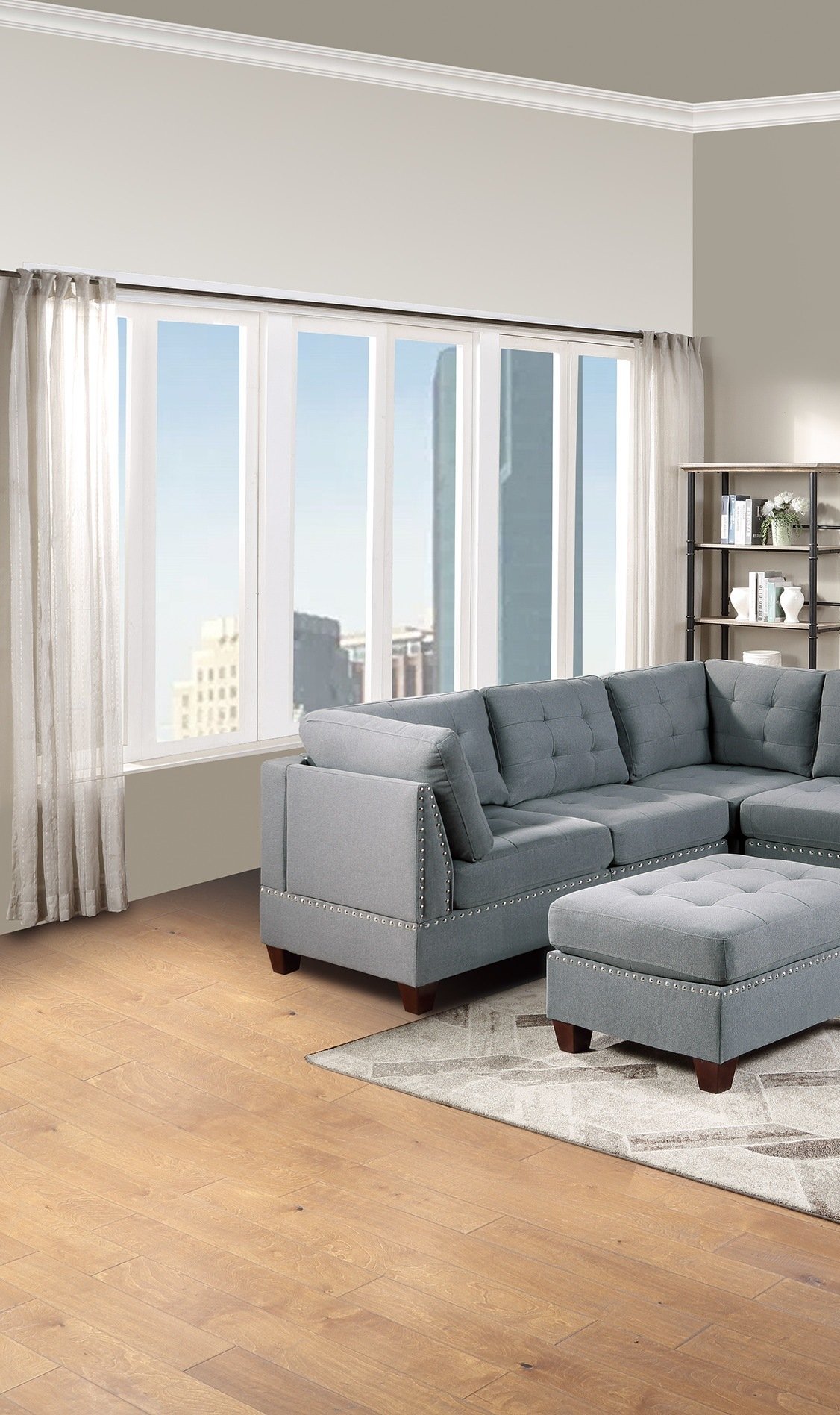 Home > Modular Sectional 9pc Set Living Room Furniture Corner Sectional Tufted Nail heads Couch Gray Linen Like Fabric 3x Corner Wedge 4x Armless Chairs and