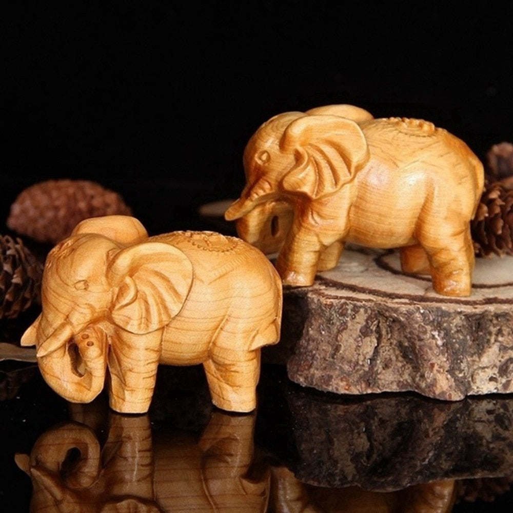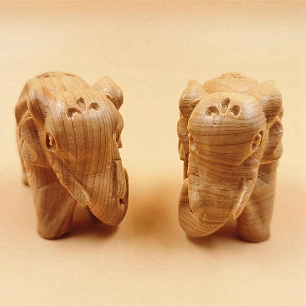 Natural Thuja Wood Elephant Figurines Craft Carved Natural Wooden Mini Animals Antique Decoration