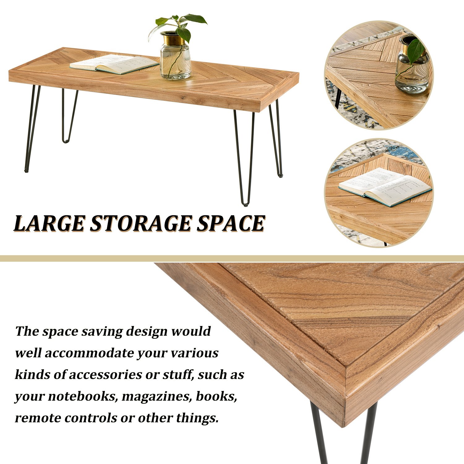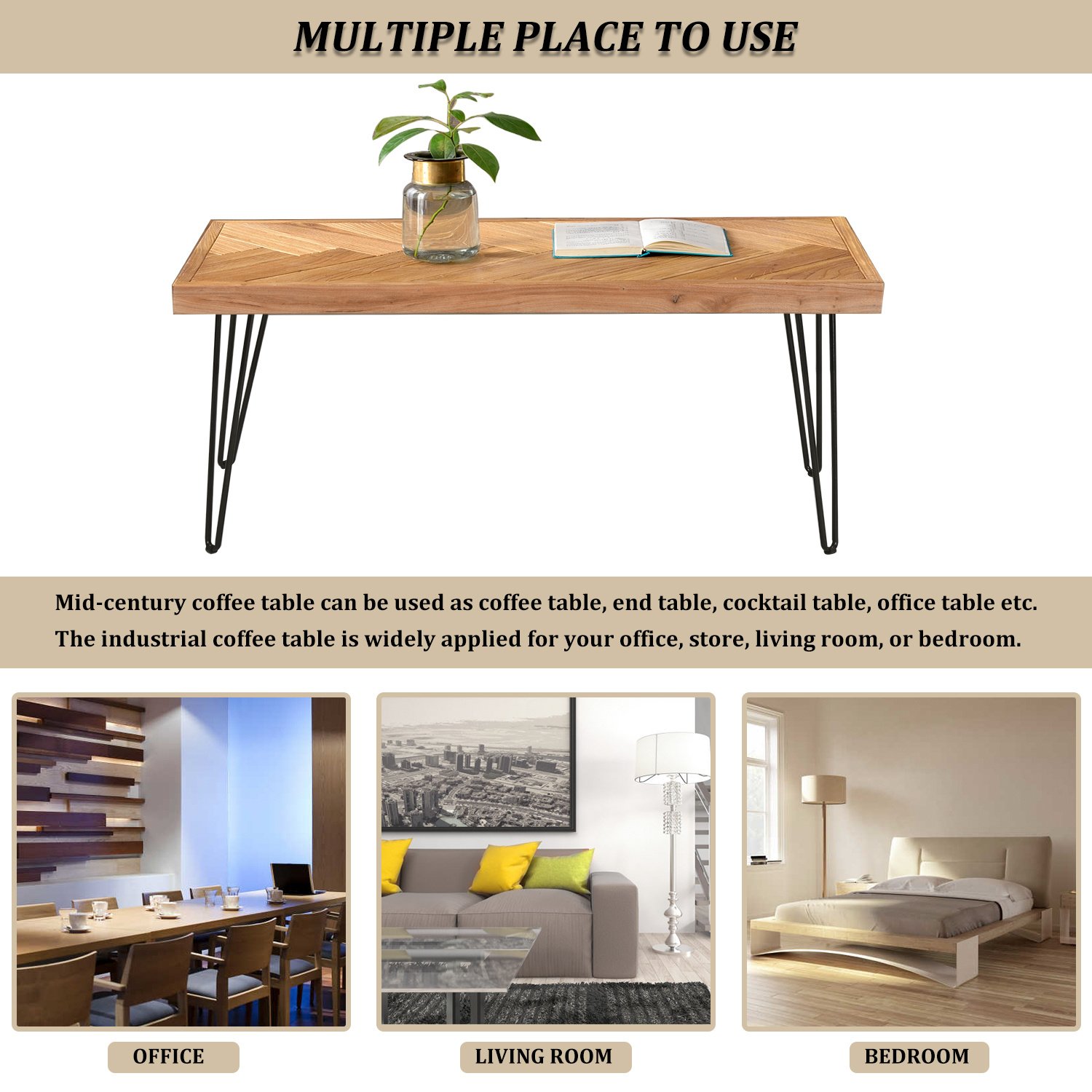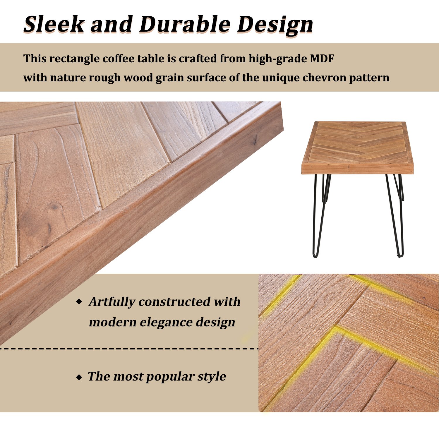 Sleek and Durable Design--Artfully constructed with modern elegance design; this rectangle coffee table is crafted from high-grade MDF with nature rough wood grain surface of the unique chevron pattern. The Sturdy metal hairpin legs ensure durability and stability. The oak sofa table is strong enough to load up to 66 lbs.