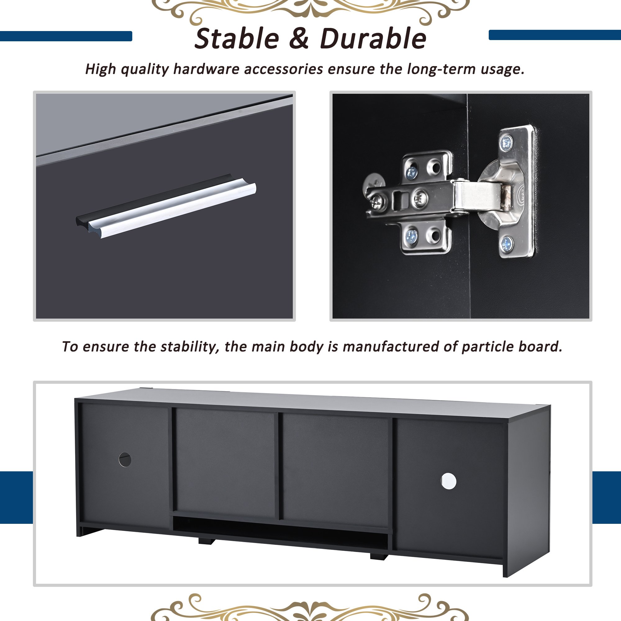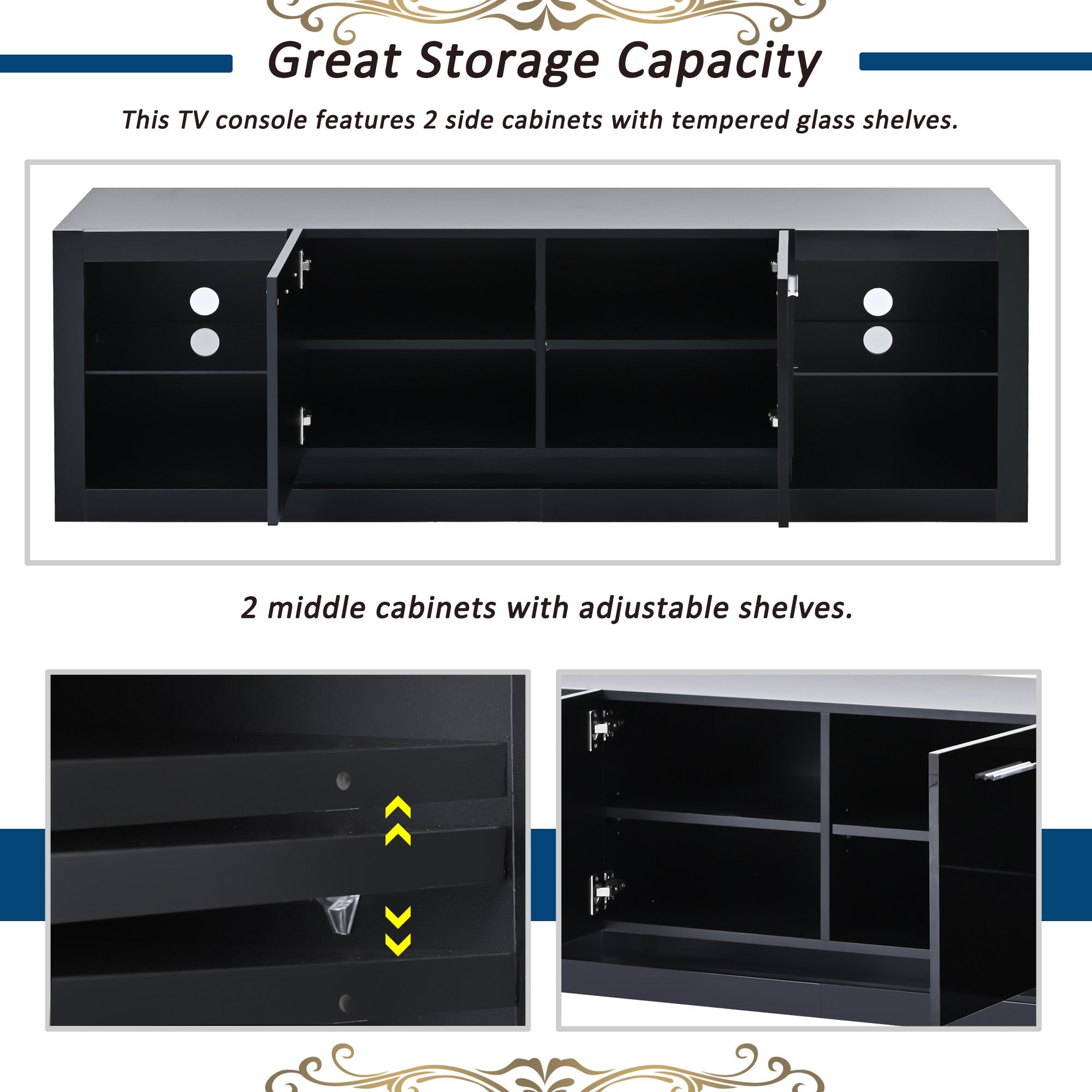 Great Storage CapacityThis TV console features 2 side cabinets with tempered glass shelves and 2 middle cabinets with adjustable shelves, providing plenty of room for your items.