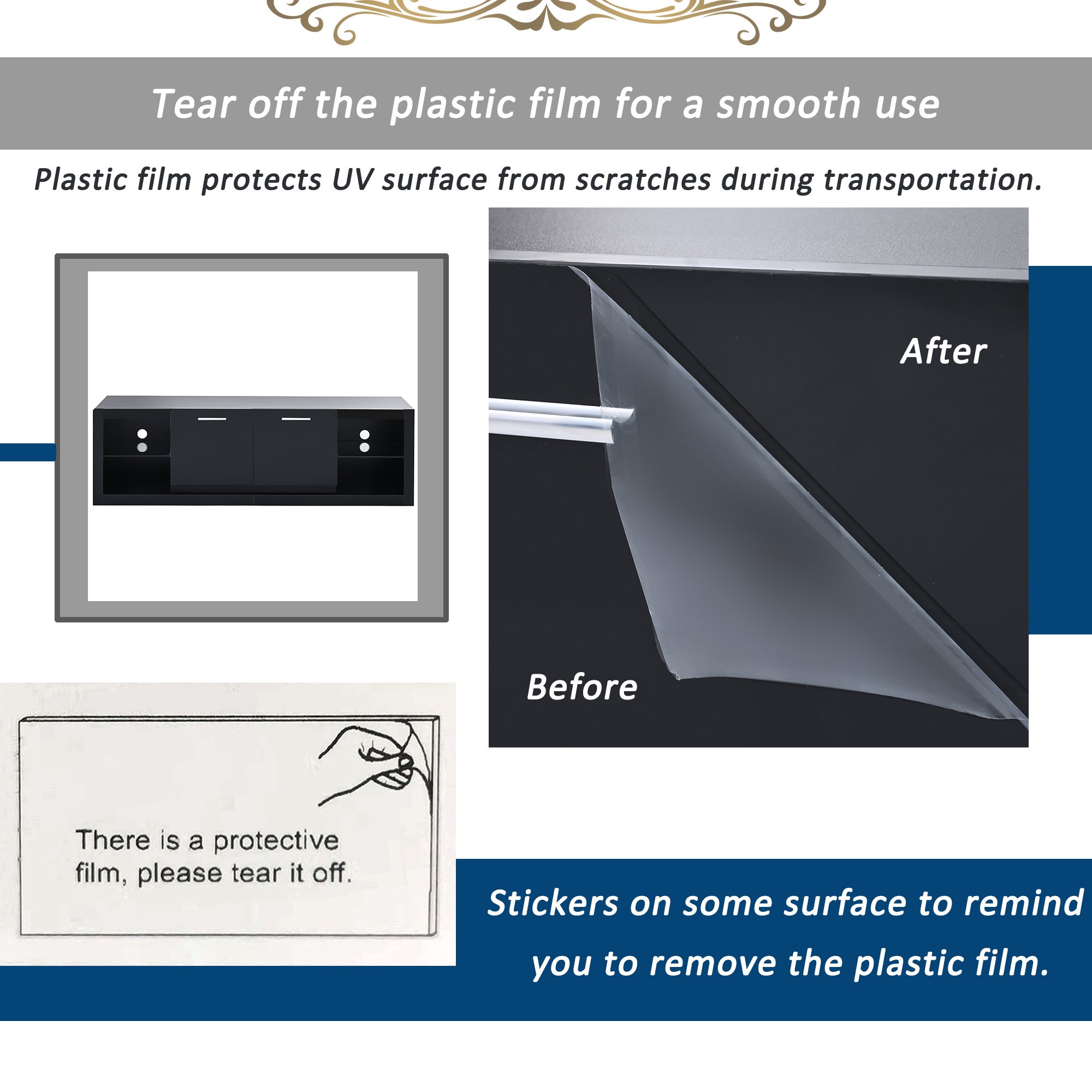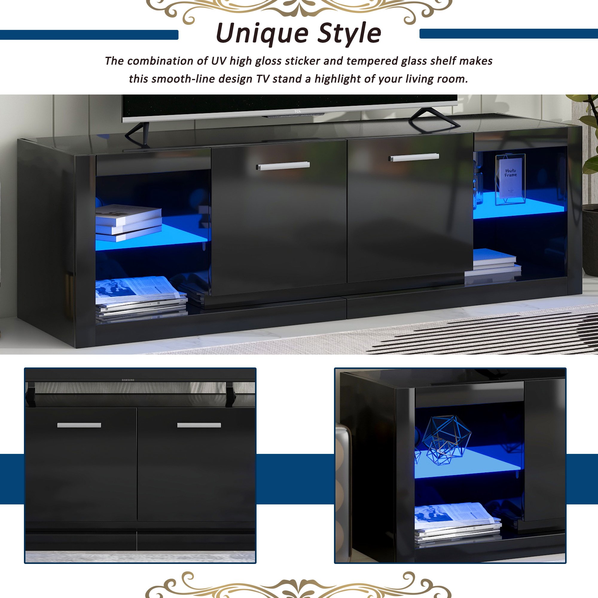 Unique StyleThe combination of UV high gloss sticker and tempered glass shelf makes this smooth-line design TV stand a highlight of your living room.