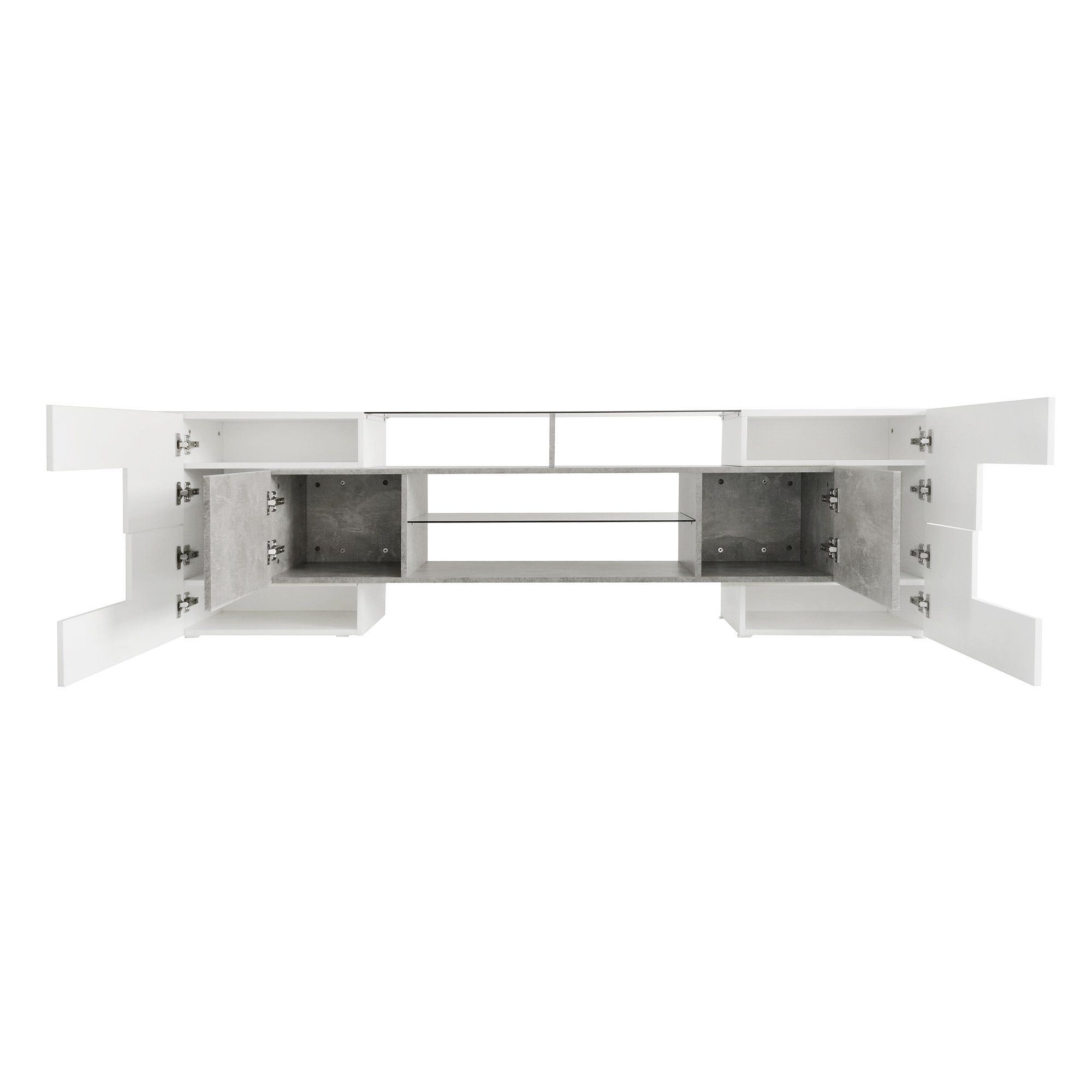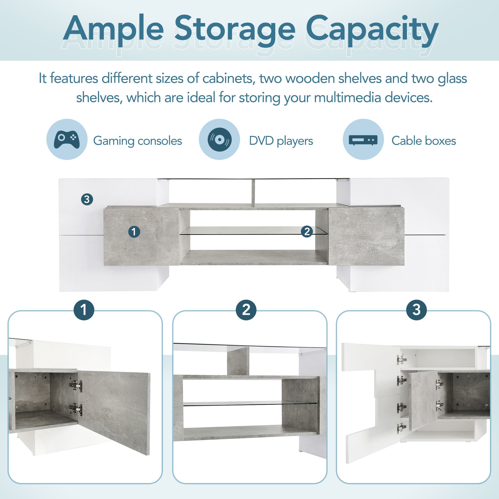 Home > ON-TREND Unique Shape TV Stand with 2 Illuminated Glass Shelves, High Gloss Entertainment Center for TVs Up to 80", Versatile TV Cabinet with LED Colo