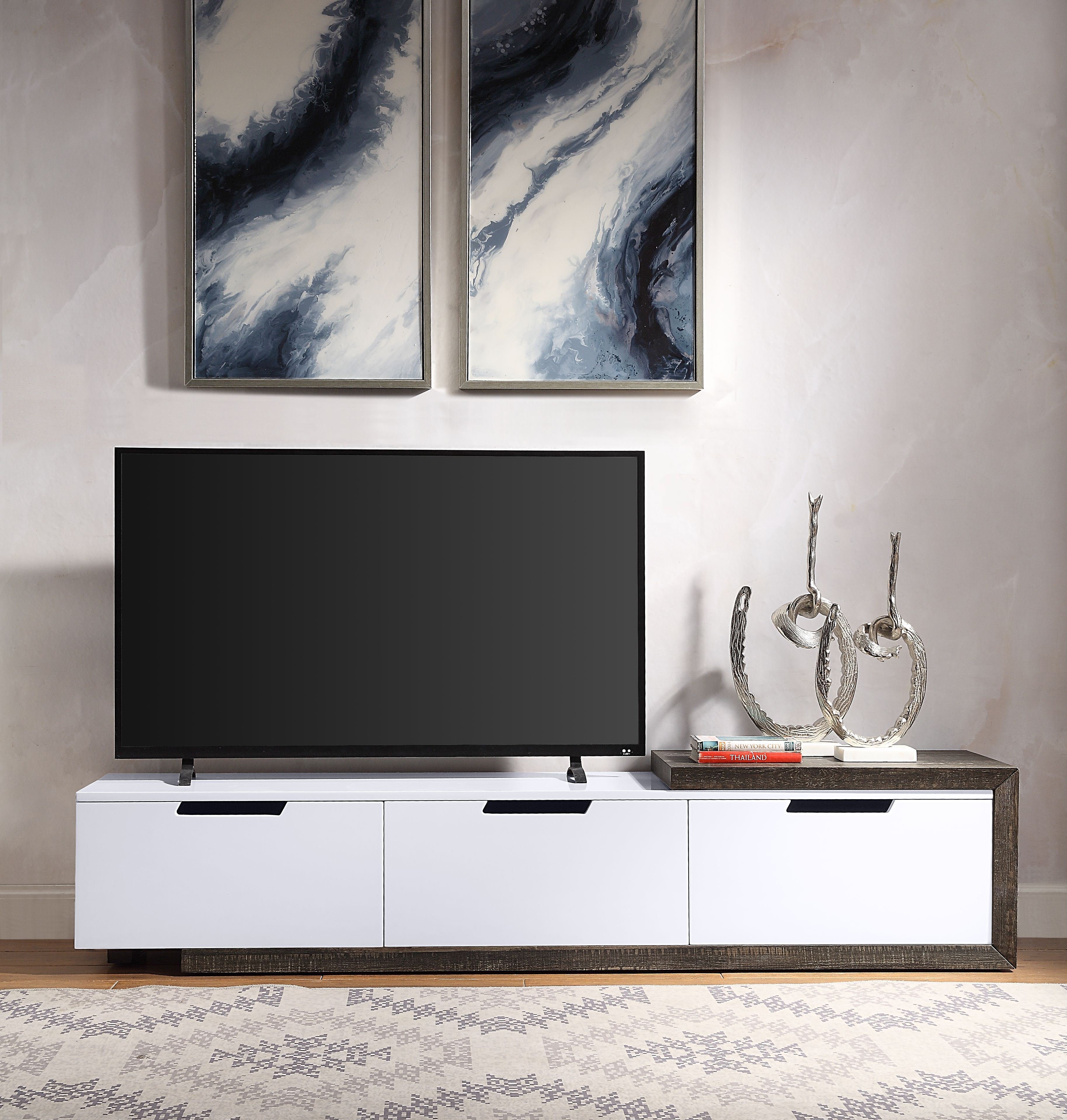 Orion TV Stand; White High Gloss & Rustic Oak 91680