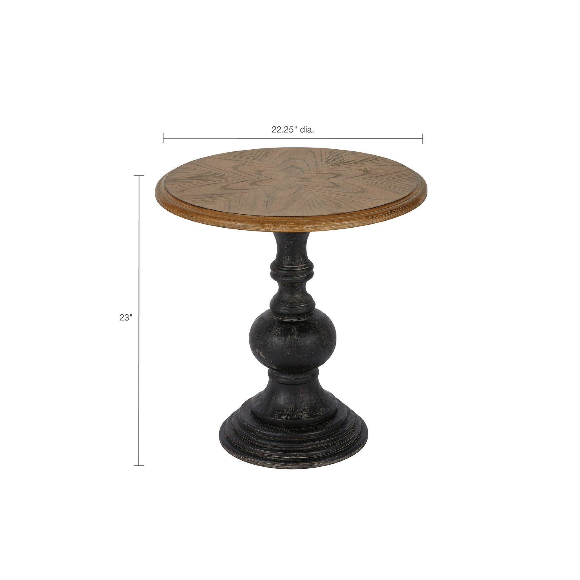 See below1 Accent Table:Dia.22.25" x 23"HTable Top:Dia.22.25" x 1"TLeg Upper:Dia.5.125"Leg Bottom:Dia.13"Leg Height:21.625"Maximum Weight Capacity:85LBS