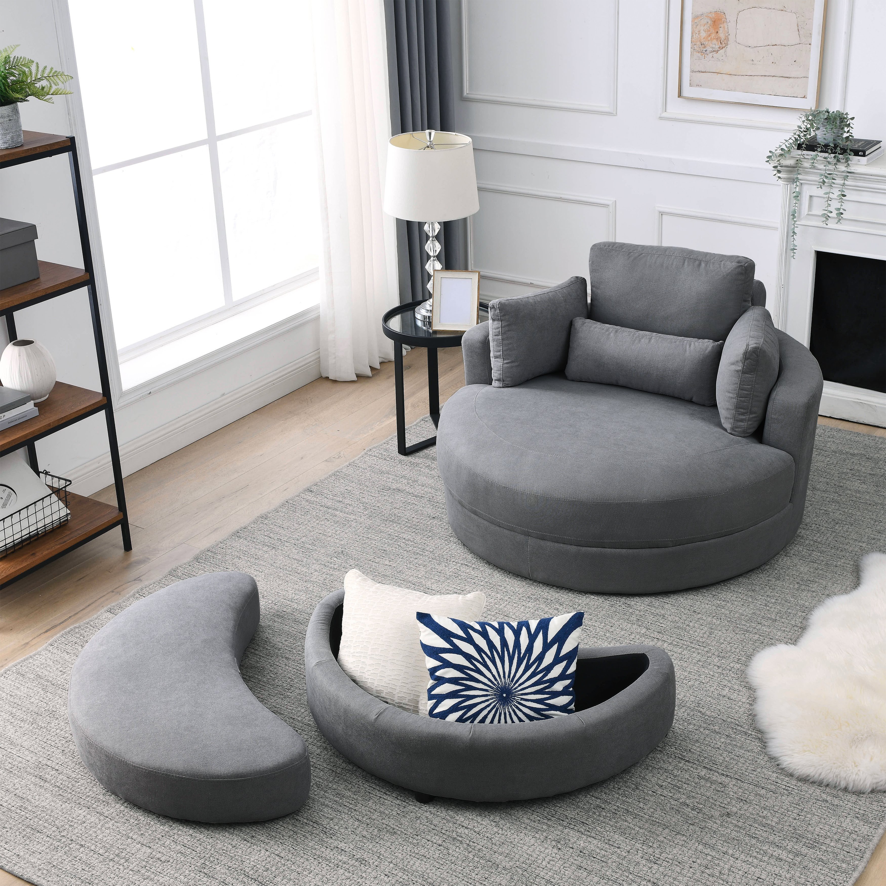 [Video] Welike Swivel Accent Barrel Modern Dark Grey Sofa Lounge Club Big Round Chair with Storage Ottoman Linen Fabric for Living Room Hotel with Pil