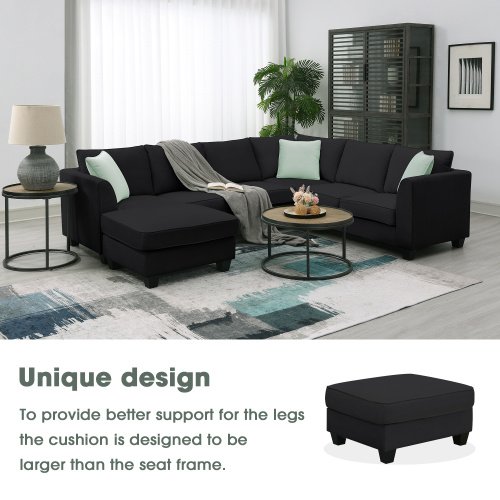Home > 112*87" Sectional Sofa Couches Living Room Sets, 7 Seats Modular Sectional Sofa with Ottoman, L Shape Fabric Sofa Corner Couch Set with 3 Pillows