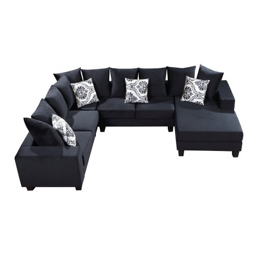 For a living room with stylish, comfortable and spacious seating, the U-shaped sofa will meet your needs. Featuring upholstery, this sofa is both versatile and stylish. And, when it comes to comfort, this sofa delivers with its huge seating area and extra accent pillows. With all these great features, you'll have a balanced room with character.