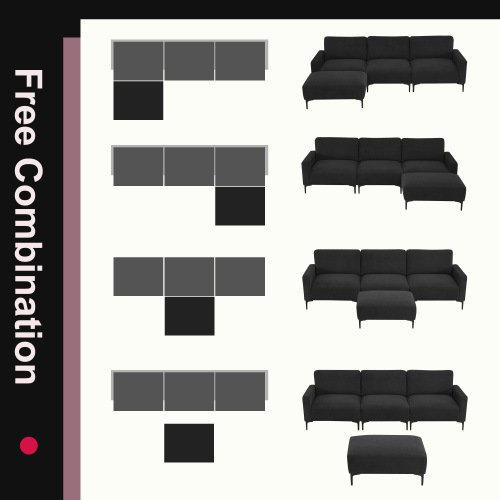 This cozy sofa is designed for relaxation. At first glance, the corner sofa looks simple, but the small details make it an eye catcher in any room.Thick cushions and lounge seating are the perfect combination. Black metal legs make this sofa a modern addition to your living room.The high resilience foam used in the seat and back cushions adds to the comfort of this sofa, which is available in a variety of colors.