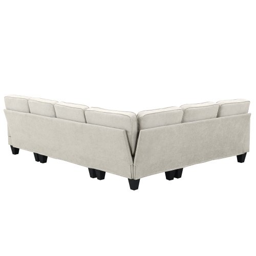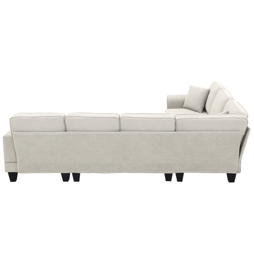 For a living room with stylish, comfortable and spacious seating, the U-shaped sofa will meet your needs. Featuring gray upholstery, this sofa is both versatile and stylish. And, when it comes to comfort, this sofa delivers with its huge seating area and extra accent pillows. With all these great features, you'll have a balanced room with character.