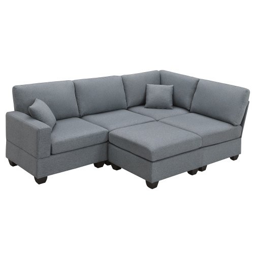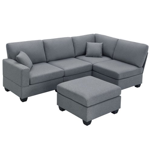 89.8*60.2" Modern Sectional Sofa,5-Seat Modular Couch Set with Convertible Ottoman,L-Shape Linen Fabric Corner Couch Set with 2 Pillows for Living Roo