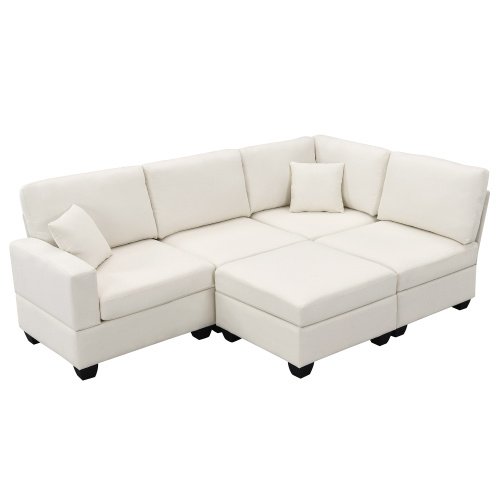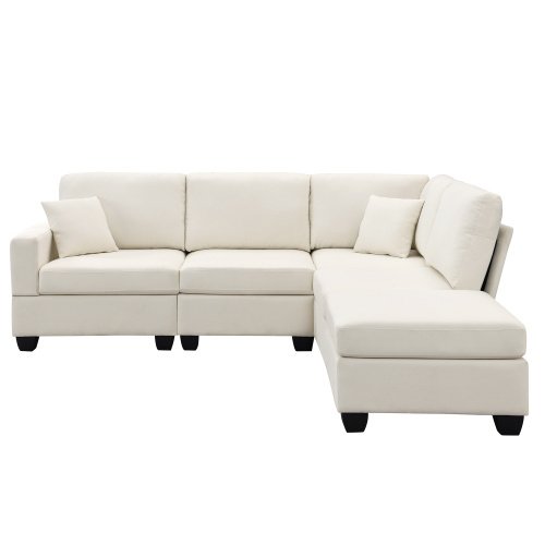 Simple line design allows this L-shaped sectional sofa to be used in a variety of styles.It also has a convertible ottoman, which makes the sofa to have more possibilities and interest.The sturdy wooden frame makes the sofa more stable and durable.