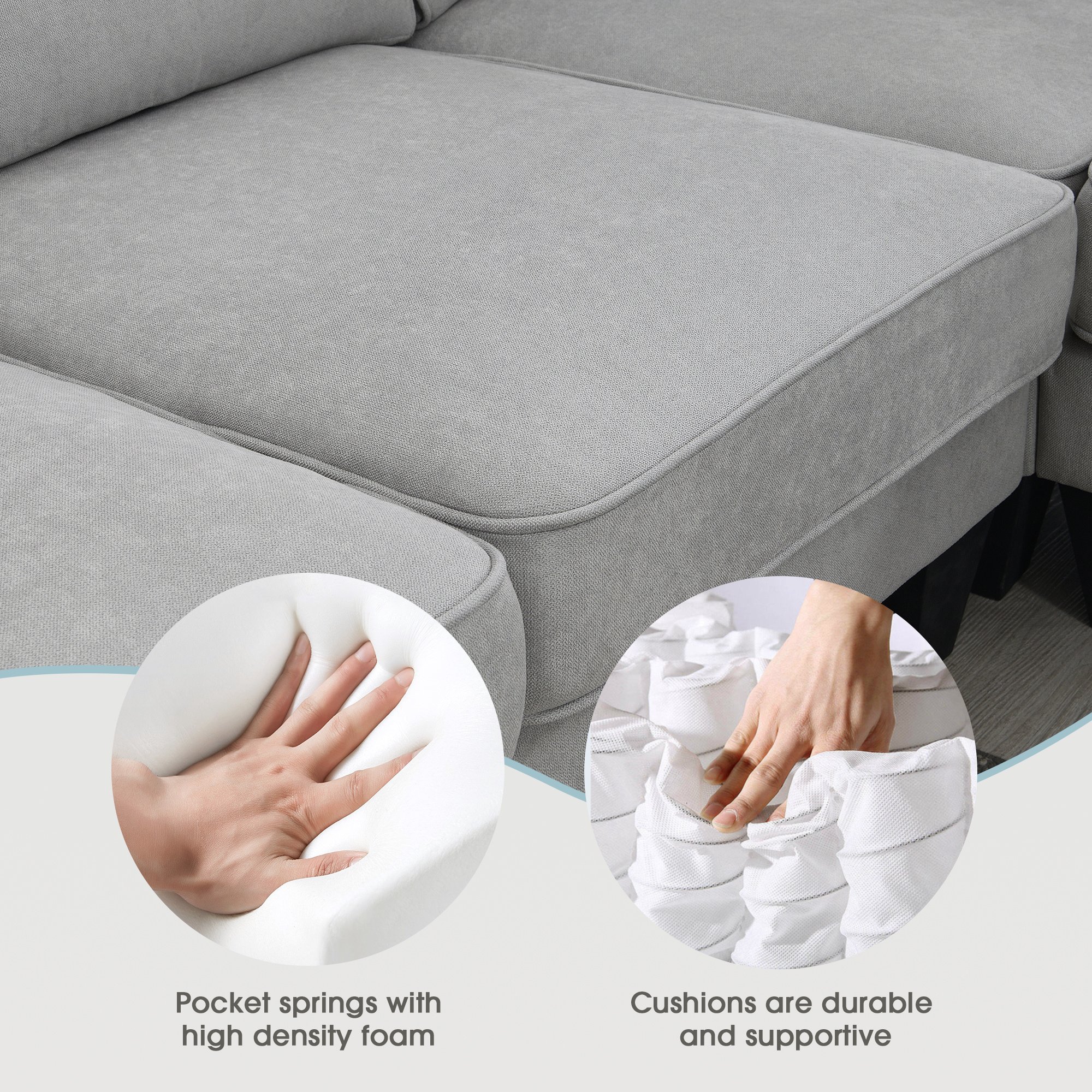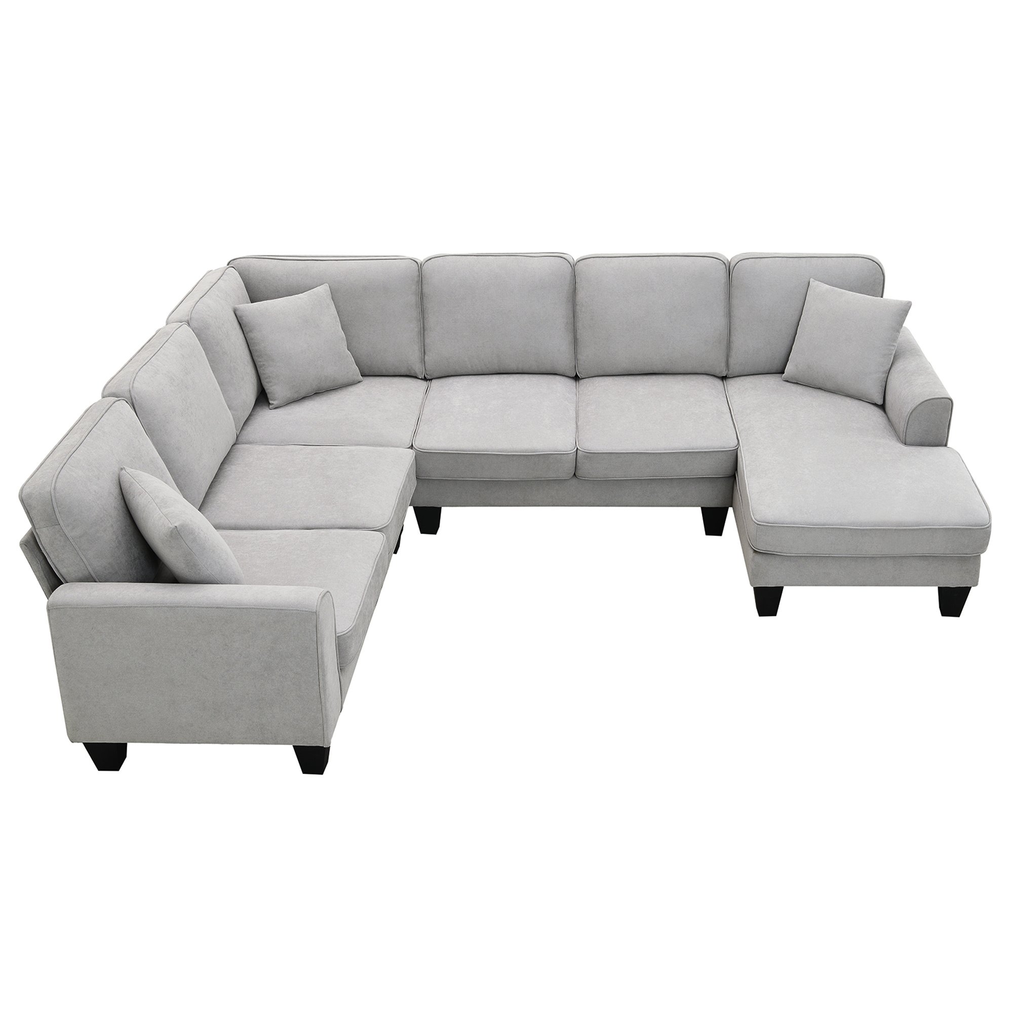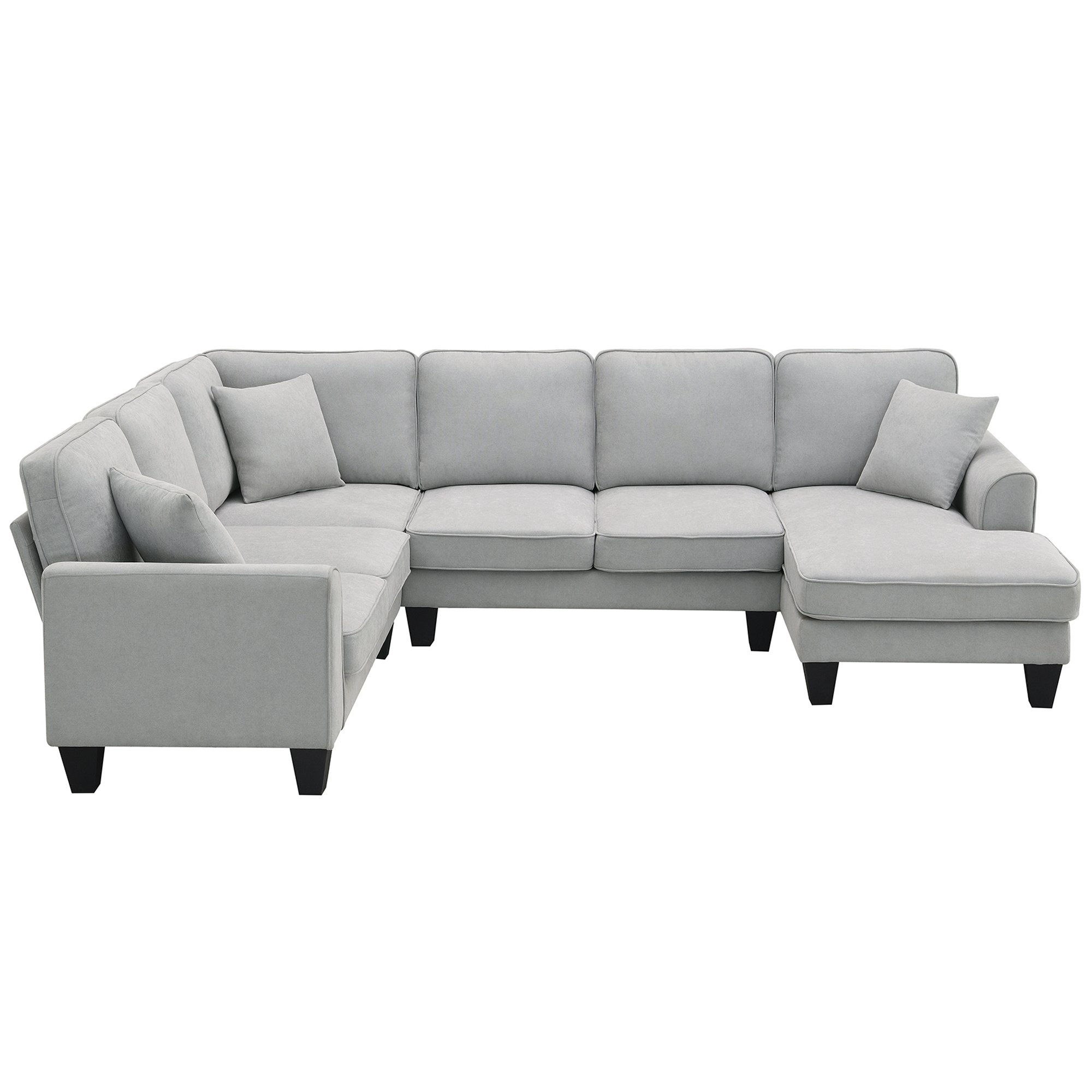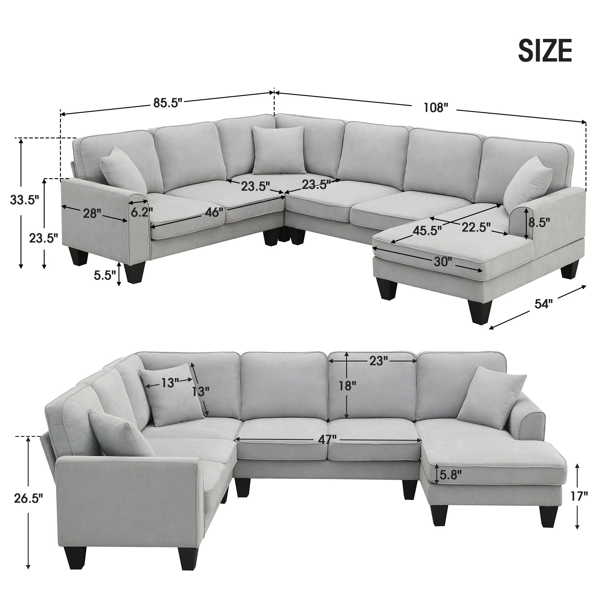 [VIDEO provided] [New] 108*85.5" Modern U Shape Sectional Sofa, 7 Seat Fabric Sectional Sofa Set with 3 Pillows Included for Living Room, Apartment, O