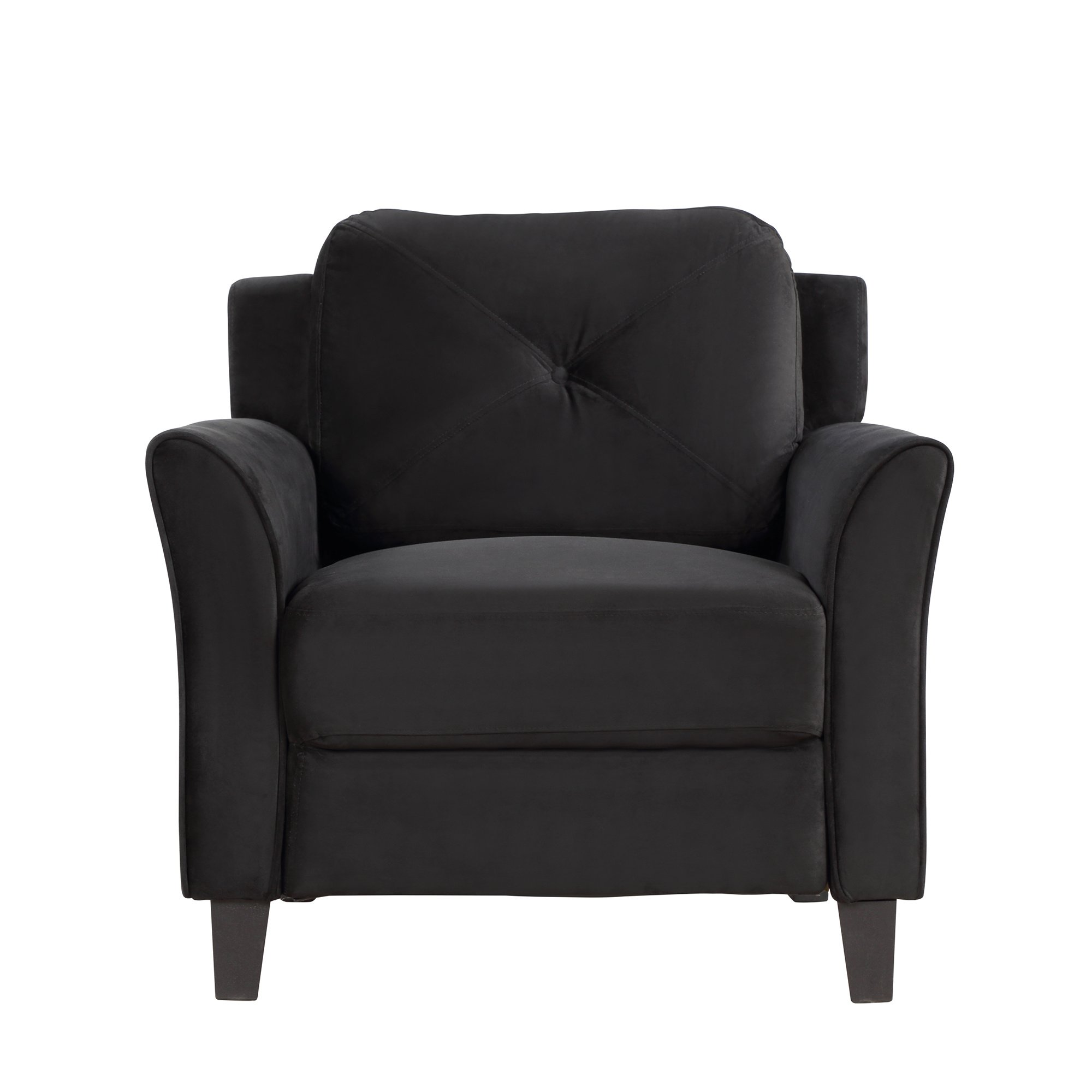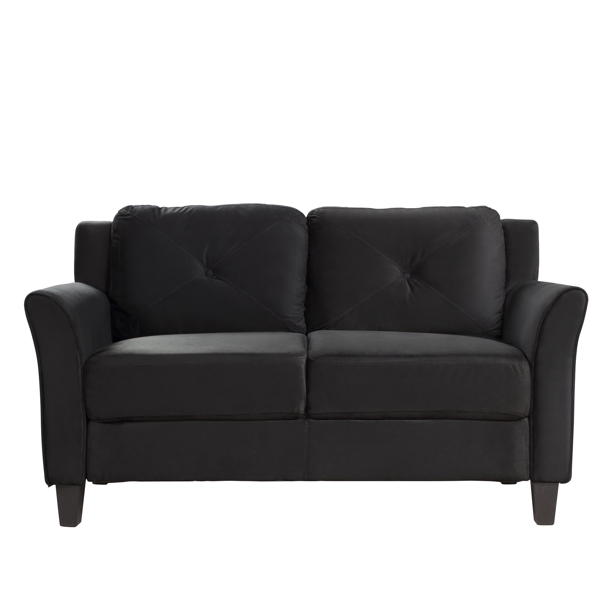 Each rounded back cushion features diamond button tufted accents for a traditional polished appearance