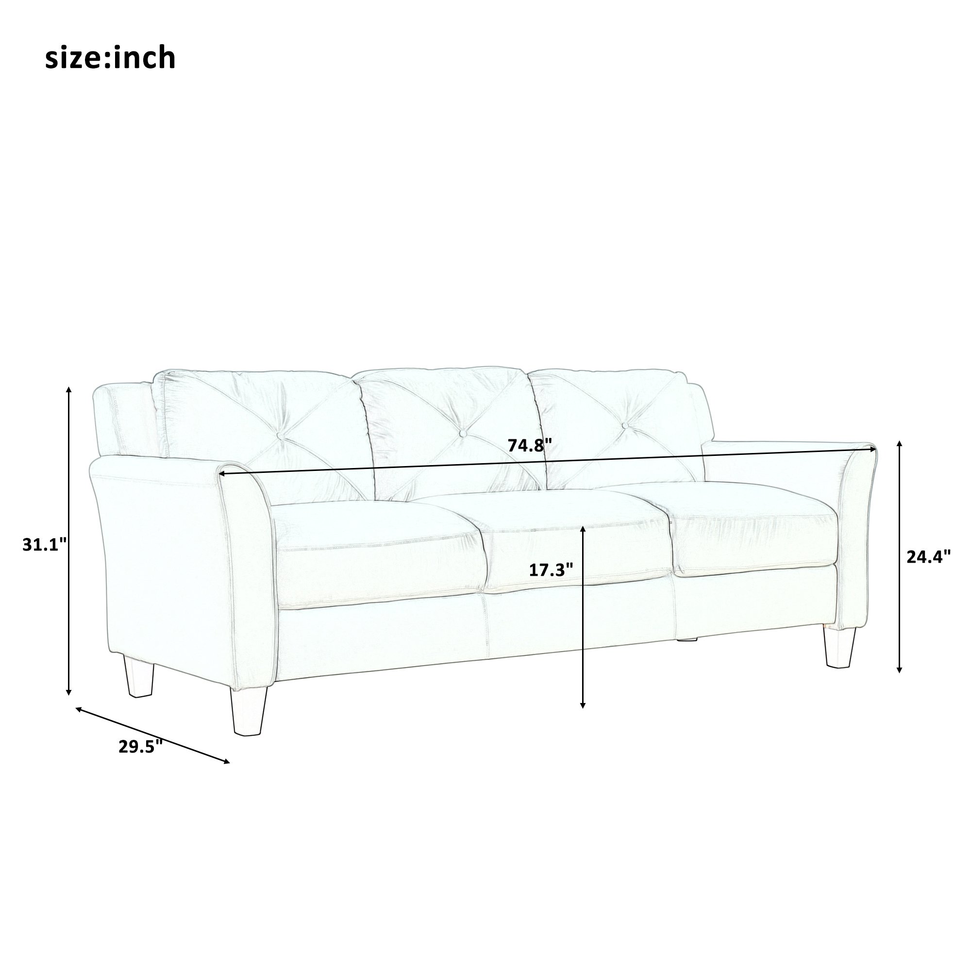Overall dimensions: Sofa:31'' H x 74.8'' W x 29.5'' D. Loveseat: 31.1'' H x 64'' W x 29.5'' D Sofa Chair: 31'' H x 43.3'' W x 29.5'' D.