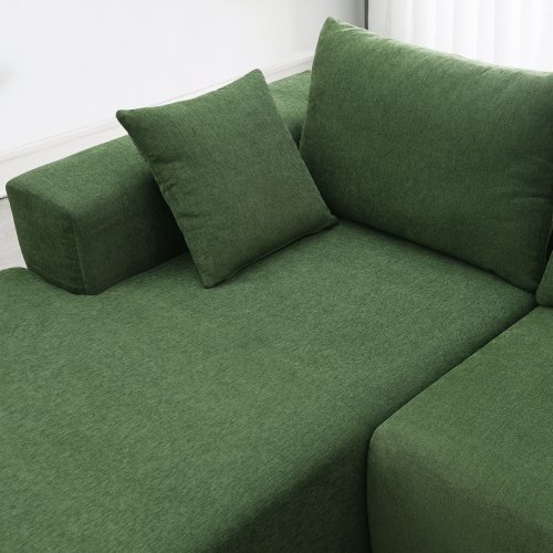 Minimalist Modular Sectional Sofa Set:The modern modular L-shape sofa couch features a simple style, focusing more on clean lines and premium chenille fabric to bring a timeless and chic to your home, sure make your living room the center of attention.Comfortable Lounging Area: This reversible sofa set characterizes plush comfort, spacious seating. The living room sofa set is made of soft and breathable chenille fabric with a sponge structure and spring pack support, plus soft pillows that are both comfortable and durable.Designed for Living: Not just a L-shape sofa couch, you can use the chaise sofa in combination with the sofa or separately to meet your needs. Straight cut edges and elegant and welcoming look that's not only pretty to see but soft durable to live with, plus extra-wide seating, the luxury sofa set providing a place to enjoy watching movies or relaxing with your family or friends.Multipurpose: Perfect for living room, apartments, bedrooms, guest rooms, children's rooms and kids can jump on it. No attic space is wasted.Easy to Move: The sofa is moved individually so they are great to navigate tricky hallways or tight doorways. No worries when you moving home.No assembly required: This sofa can free of your stereotyped nightmare of furniture assembly. Please take all packages out and pat every part to make it rebound better and fluffy, so that it can restore to picture-like status. It might takes up to 72 hours.Please contact us if you have any questions.