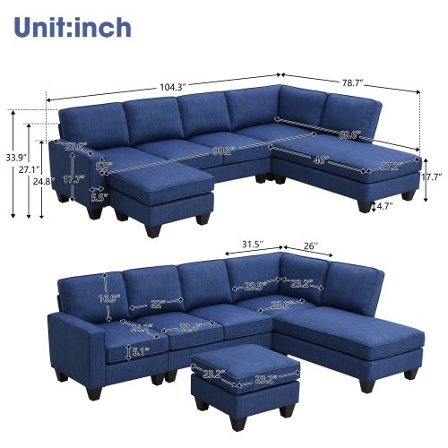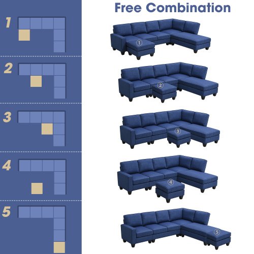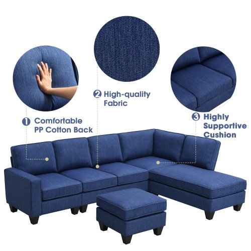 Modern and stylish design allows this L-shaped sectional sofa to be used in a variety of styles.It also has a convertible ottoman, which makes the sofa to have more possibilities and interest.The sturdy wooden frame makes the sofa more stable and durable.The wide seat depth and width can make you feel more comfortable when you sit on it.