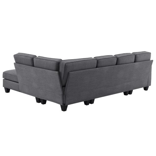 Home > 104.3*78.7" Modern L-shaped Sectional Sofa,7-seat Linen Fabric Couch Set with Chaise Lounge and Convertible Ottoman for Living Room,Apartment,Office,3