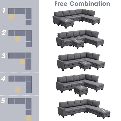 Modern and stylish design allows this L-shaped sectional sofa to be used in a variety of styles.It also has a convertible ottoman, which makes the sofa to have more possibilities and interest.The sturdy wooden frame makes the sofa more stable and durable.The wide seat depth and width can make you feel more comfortable when you sit on it.