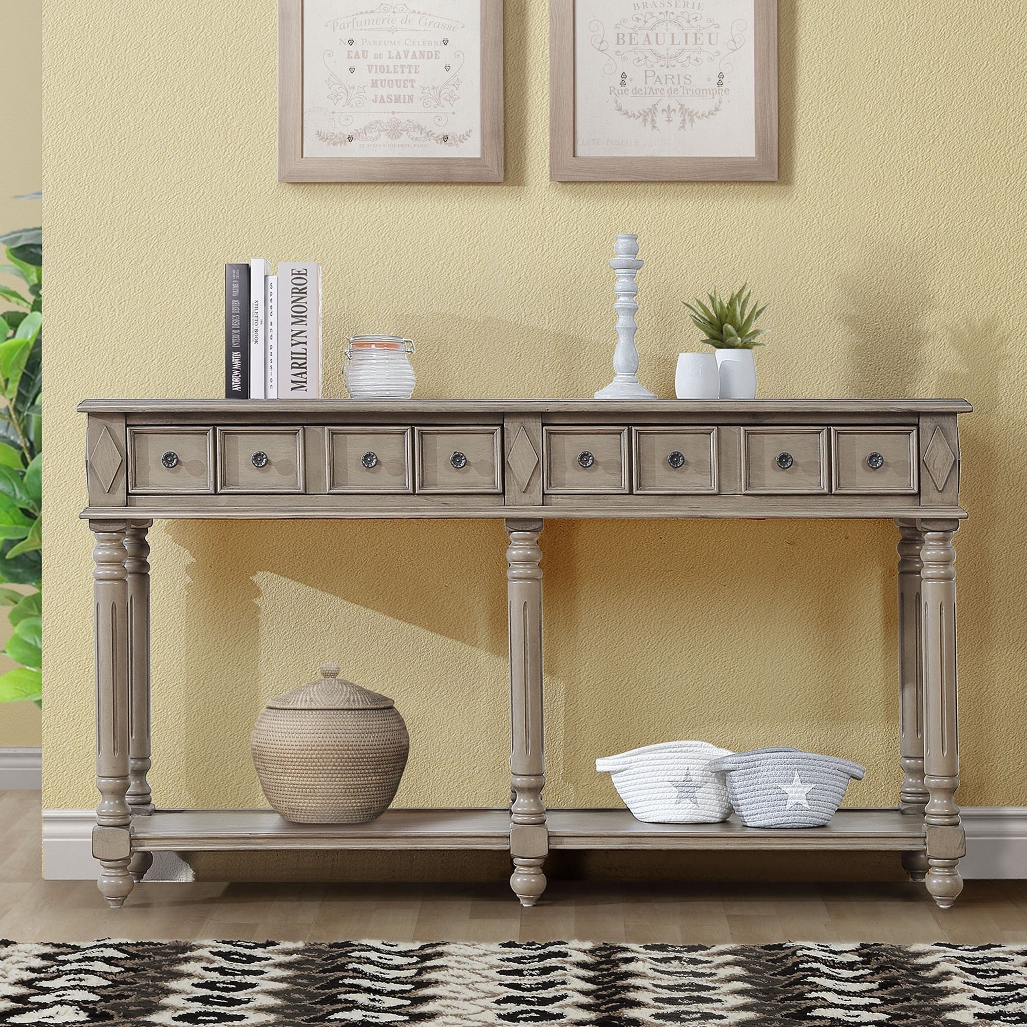 [Durable &Sturdy Sofa Table]This console table's frame and legs constructed of solid timber, and coated with a beautiful distressed finish. The net weight of this 58'' console table is close to 60LBS, which can make your items on it more stable, while similar models on the market weigh only 30-50LBS. And the 6 legs support the table not easy to shake.