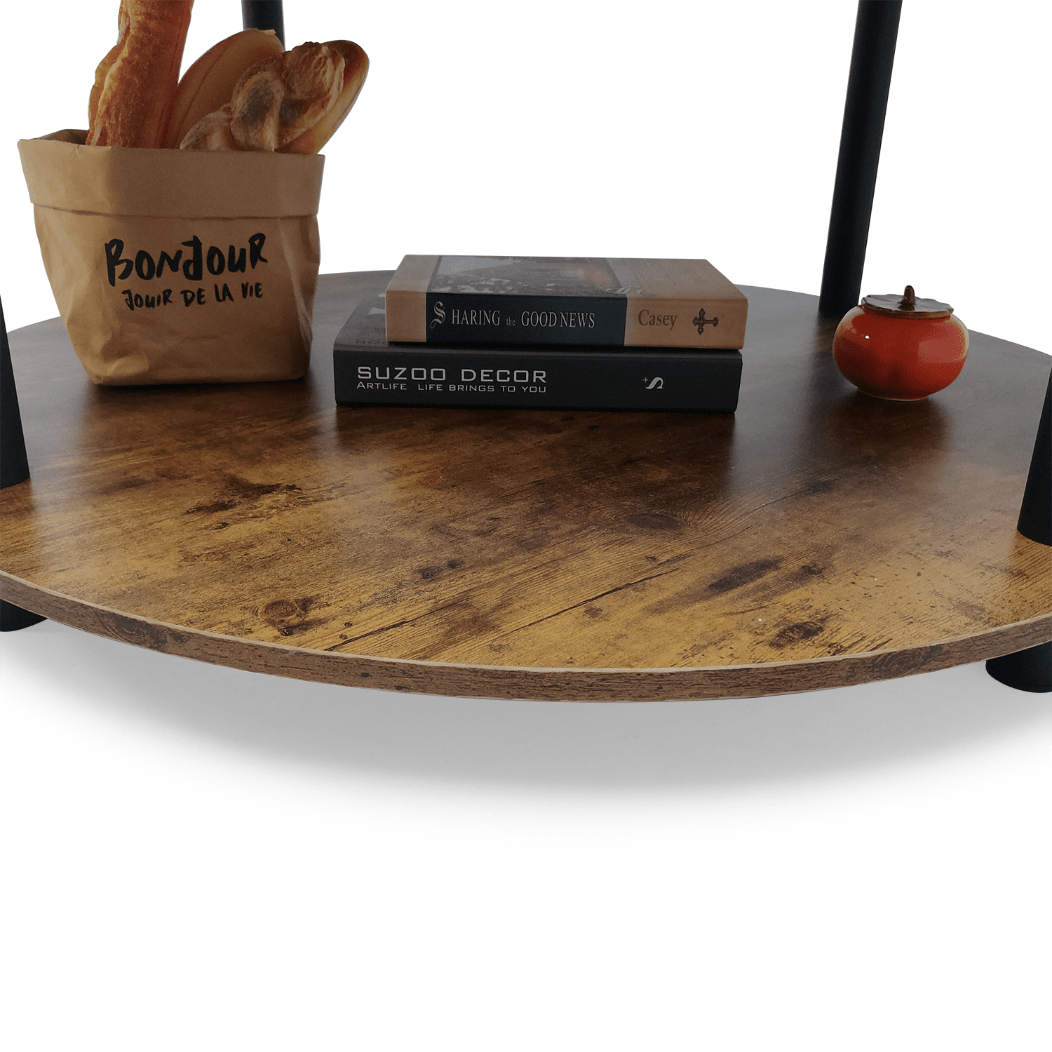 This striking coffee table features a vintage color finish that gives it a unique aesthetic that will add a unique touch to your home decor. The coffee table is made of high quality solid wood and metal for durability. A visual experience for your guests in your living room, this round coffee table is the perfect choice. The modern chic frame makes it the perfect addition to any contemporary living space.