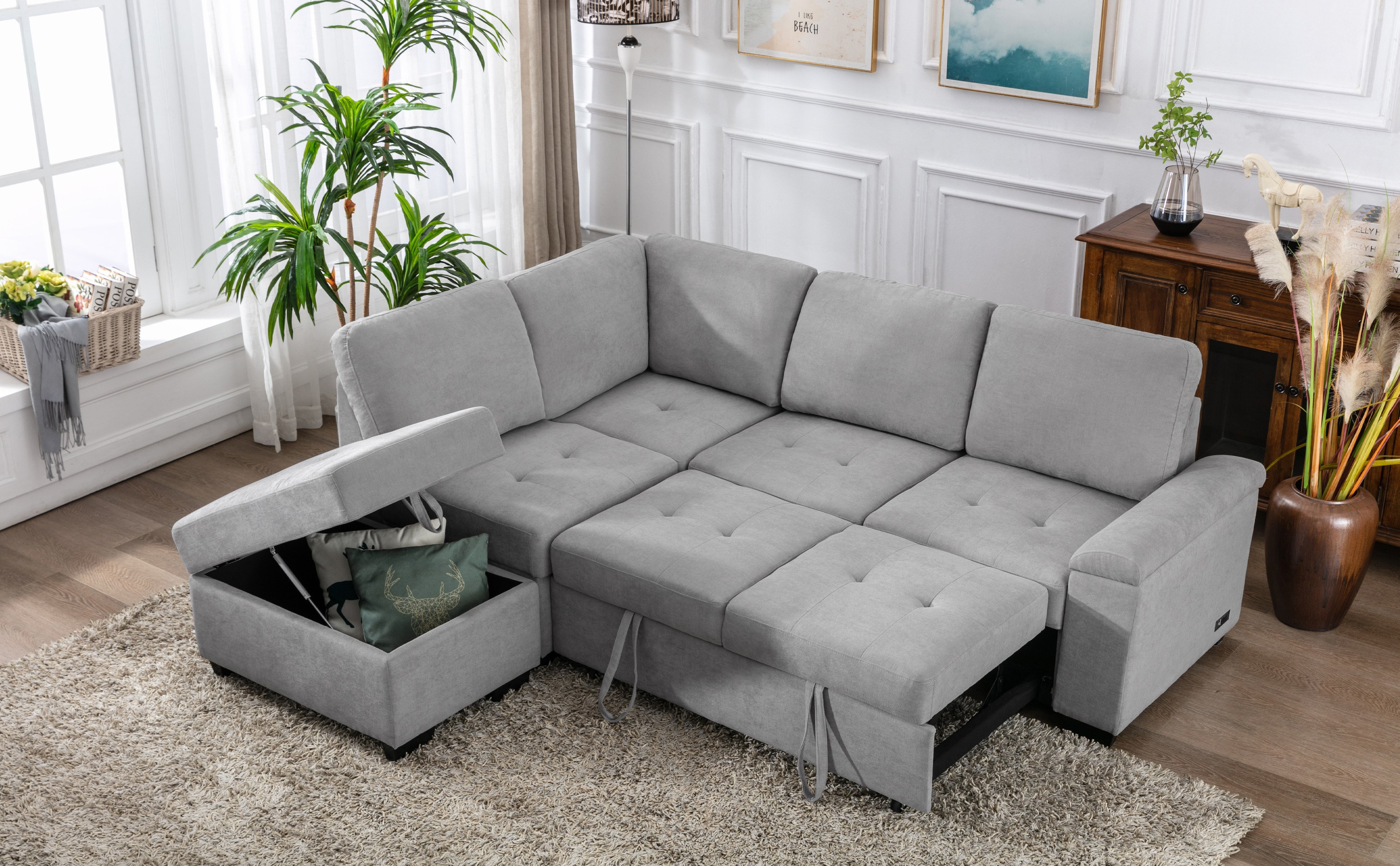 Pratical Sleeper Sofa Bed - An l-shape sofa can be easily converted into a bed. The equipped portable handle with the assistance of the bottom pulley device quickly completes the bed transformation. If you often have overnight guests, then this could be a great solution.