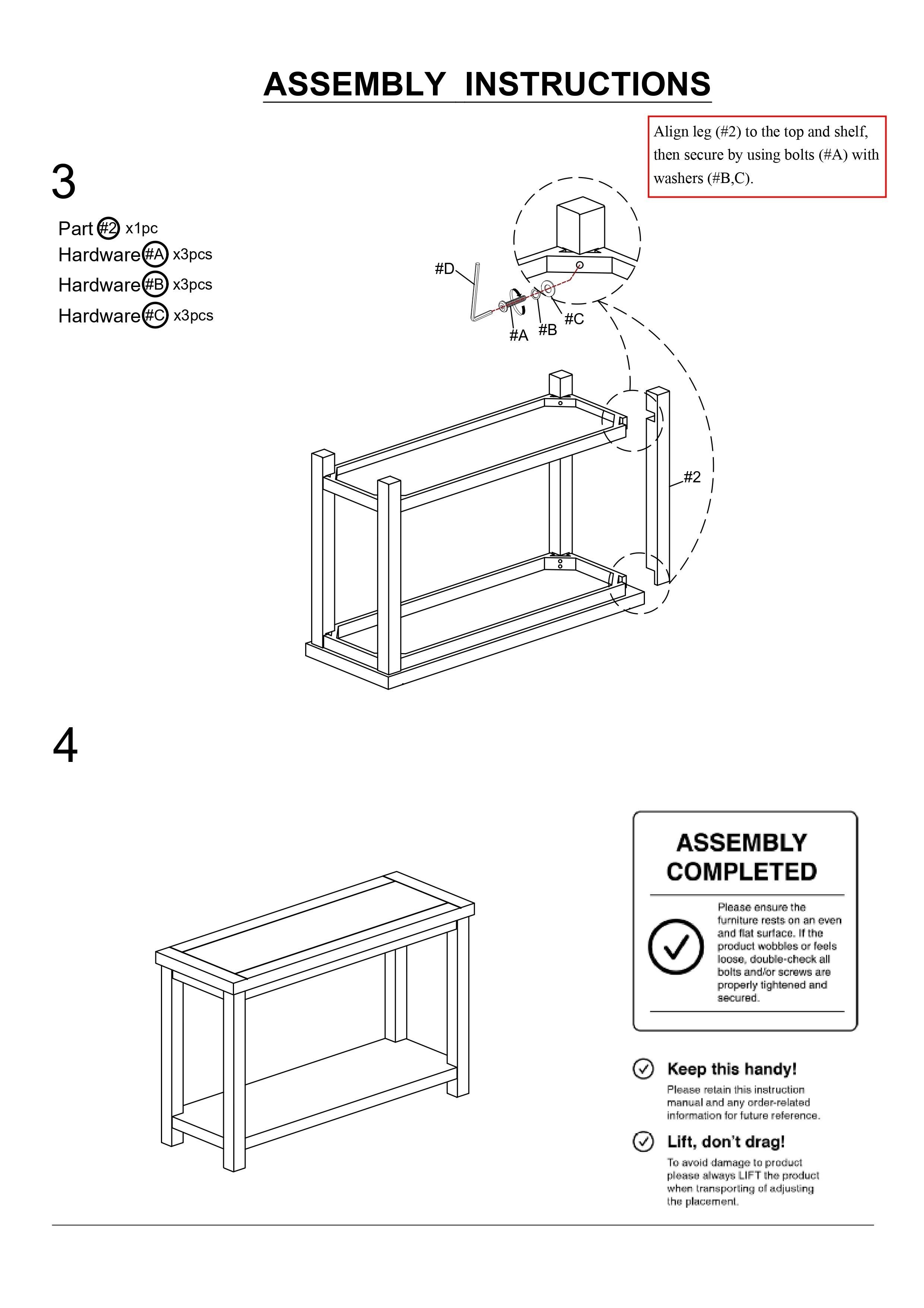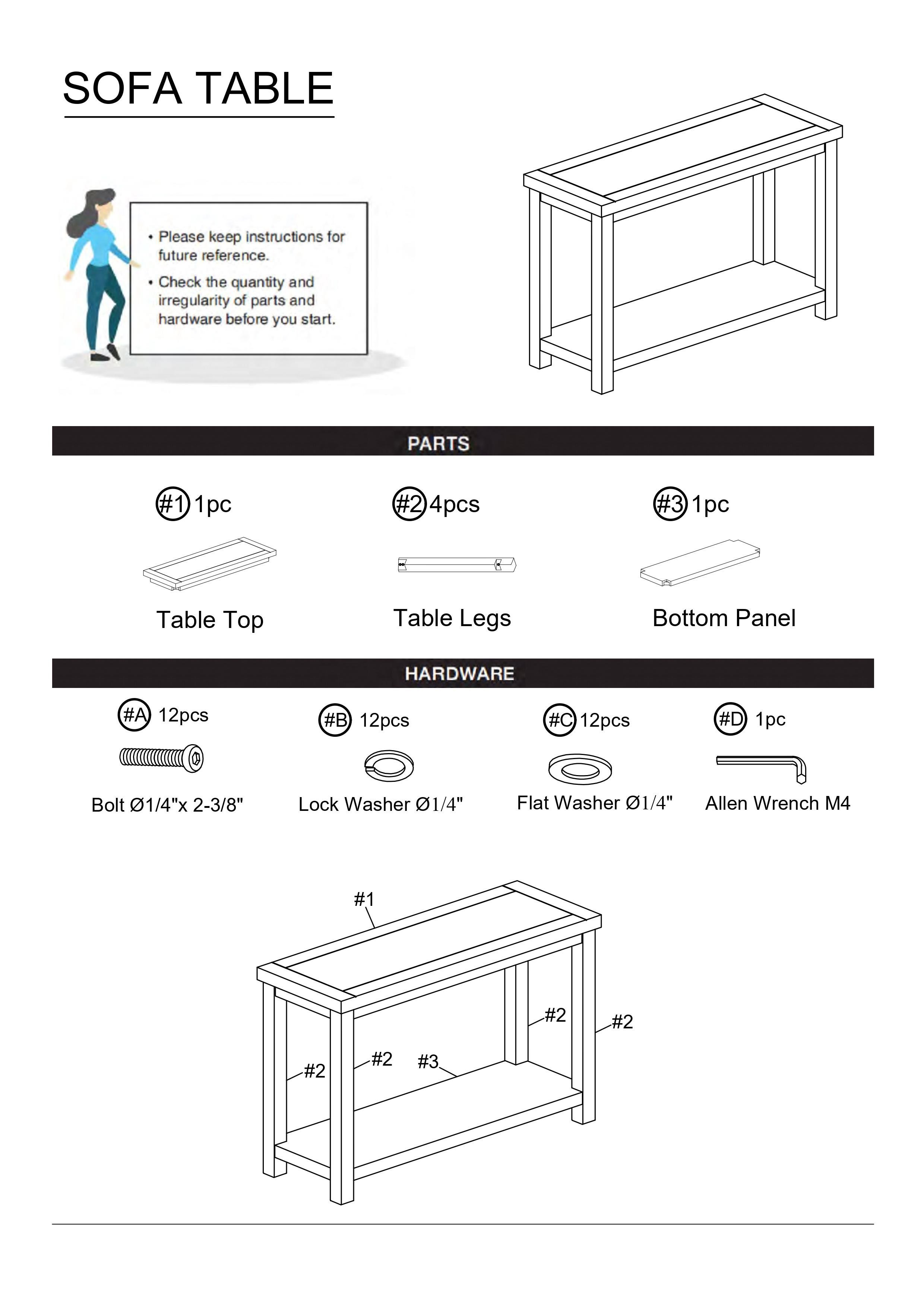 Sofa Table - 47 5/8"L X 17"W X 30"H