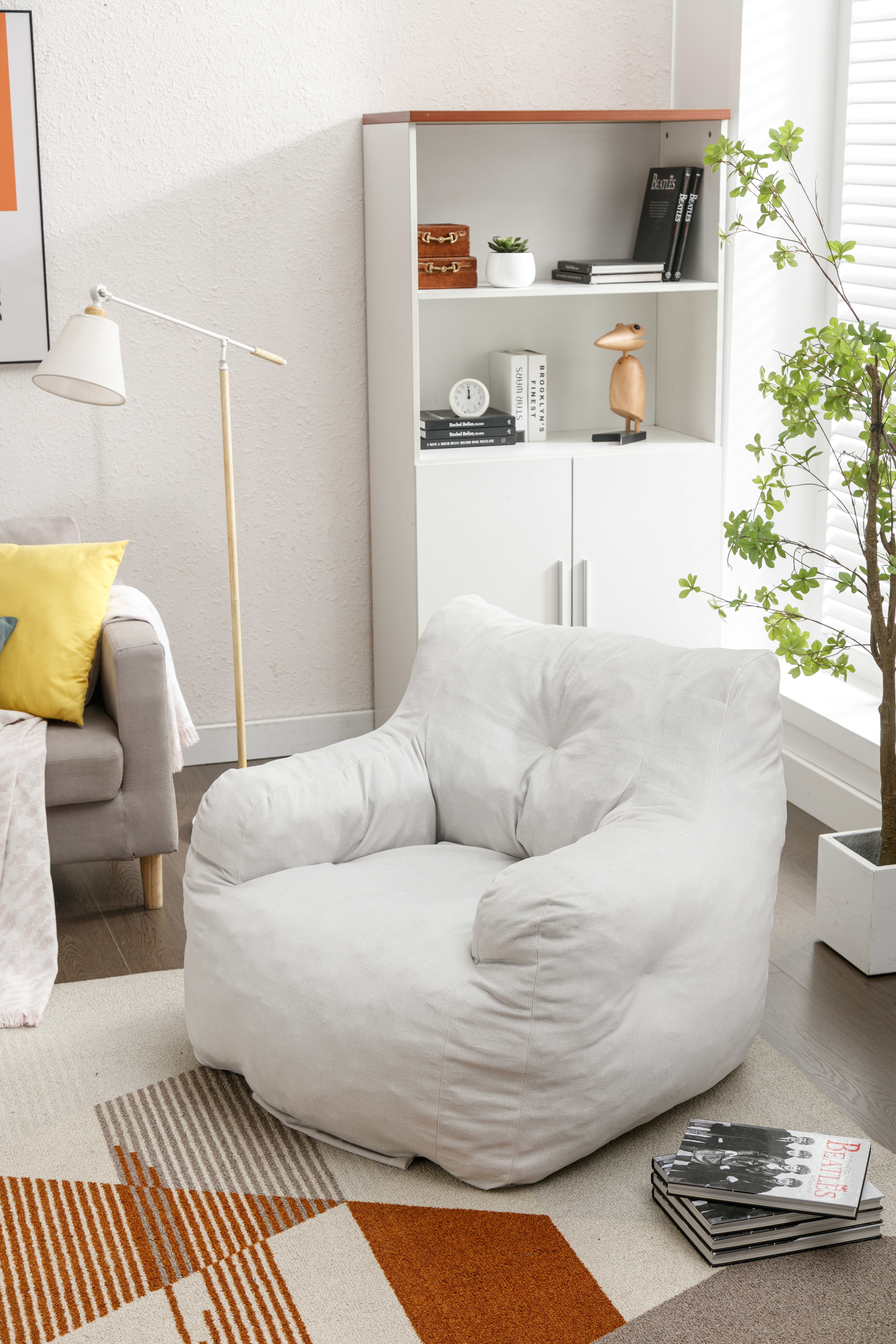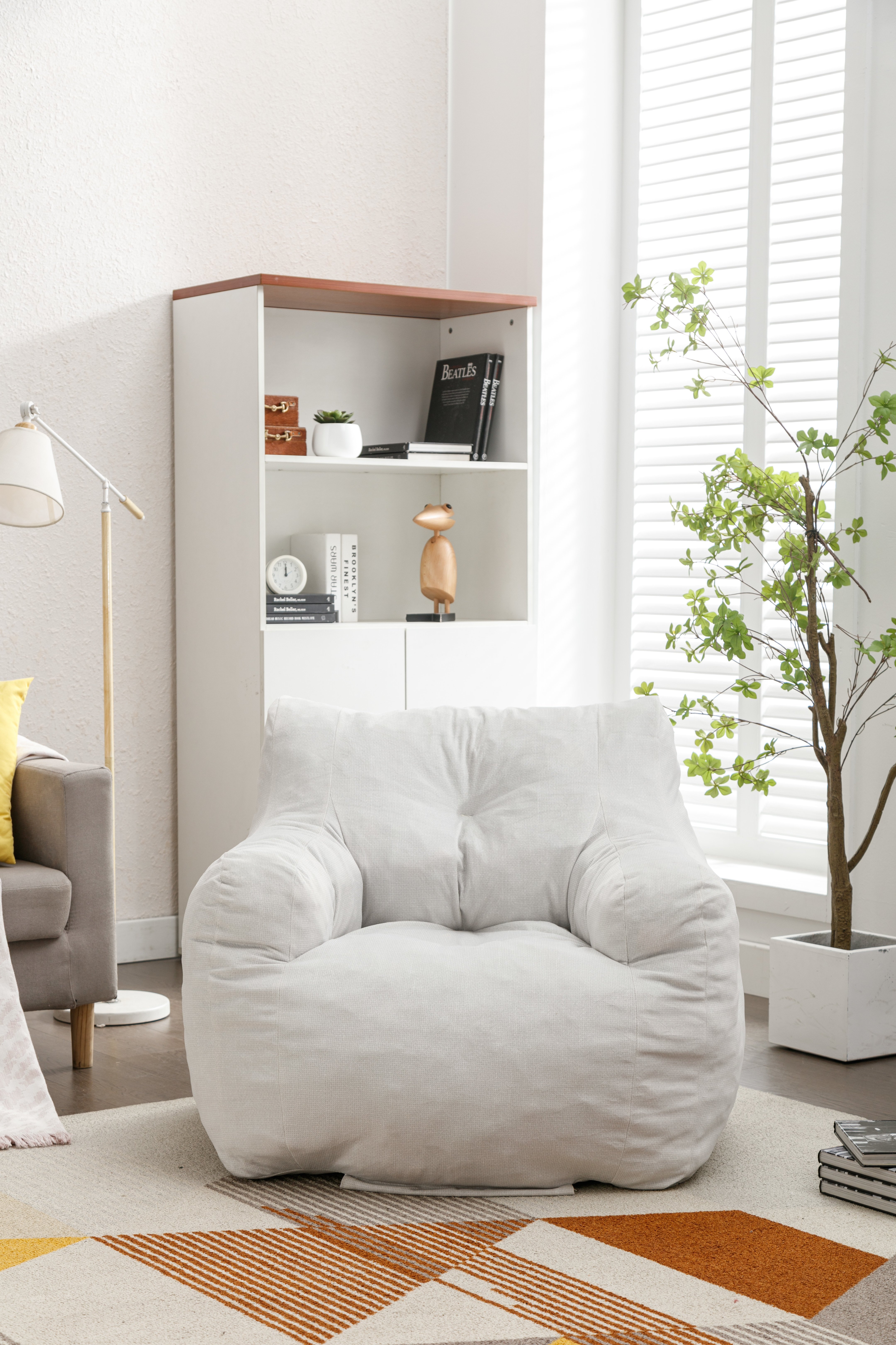 Soft Cotton Linen Fabric Bean Bag Chair Filled With Memory Sponge,Ivory