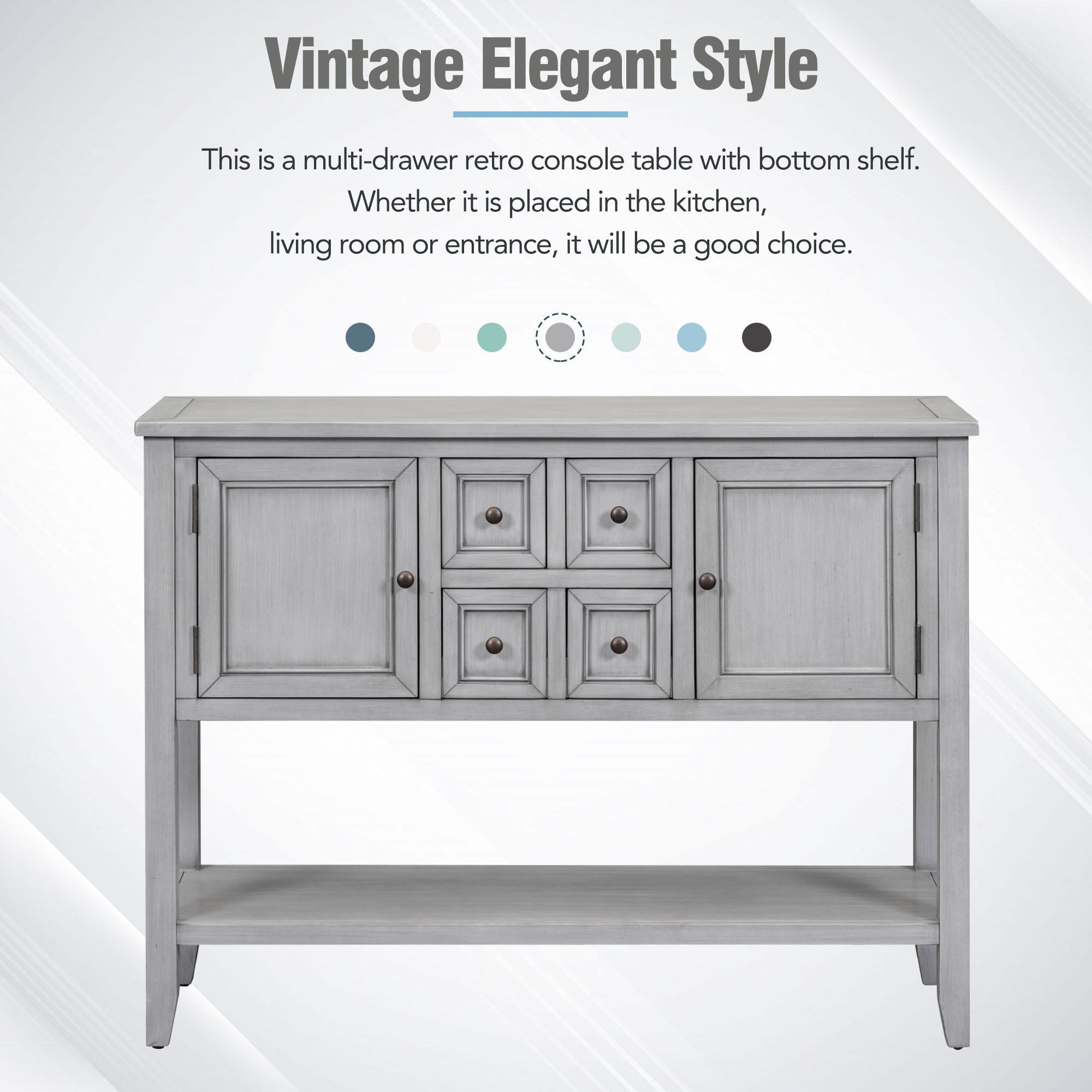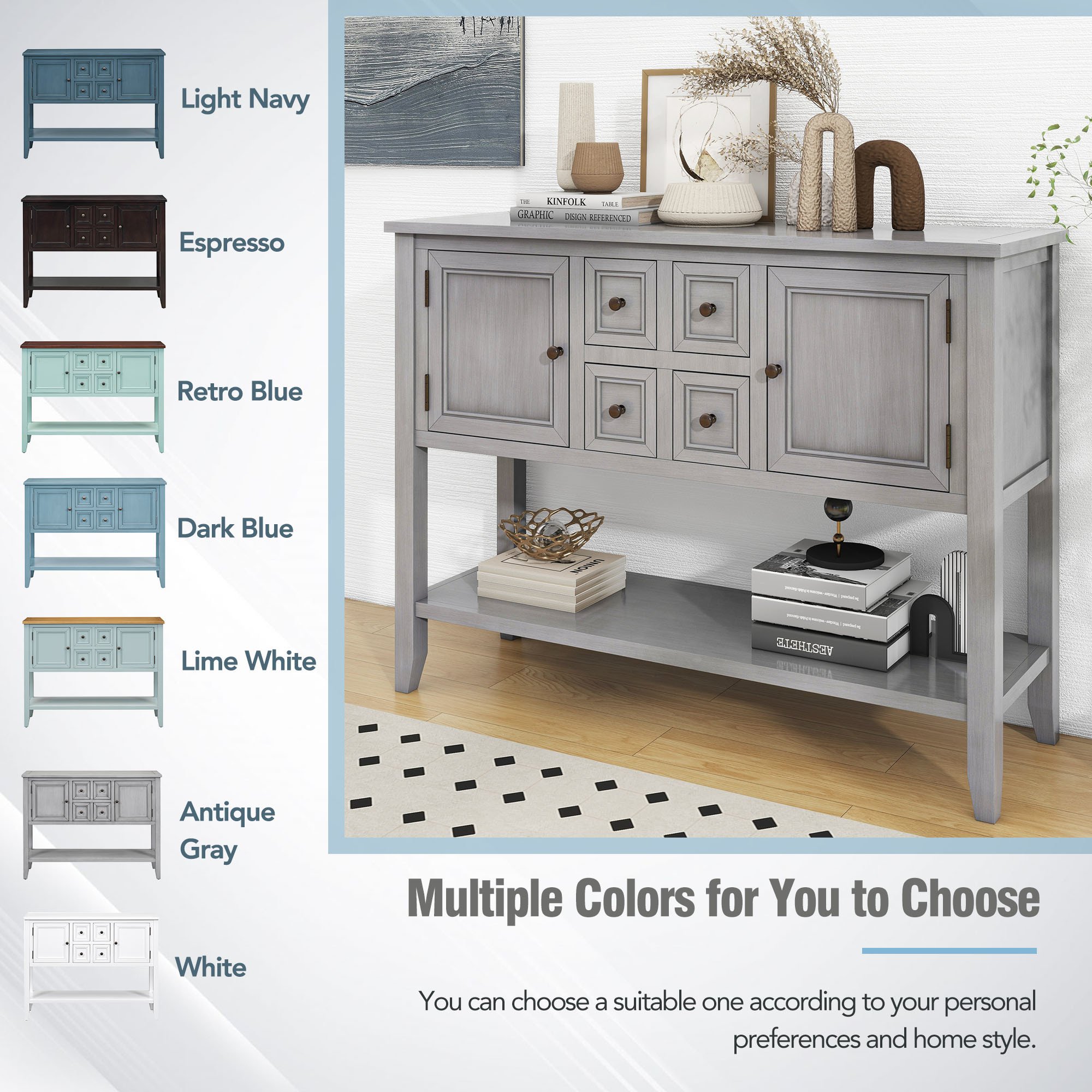 Vintage Elegant StyleThis is a multi-drawer retro console table with bottom shelf. The low-key and elegant retro style can be matched with your home decoration at will, adding an elegant and romantic atmosphere to your home. This console table is available in many colors, including retro blue, light navy, white, lime white, espresso, antique gray, and dark blue. You can choose a suitable one based on your personal preferences and home style.