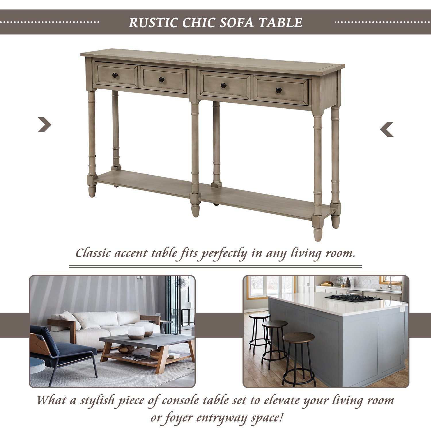 TREXM Console Table Sofa Table Easy Assembly with Two Storage Drawers and Bottom Shelf for Living Room, Entryway (Grey Wash)