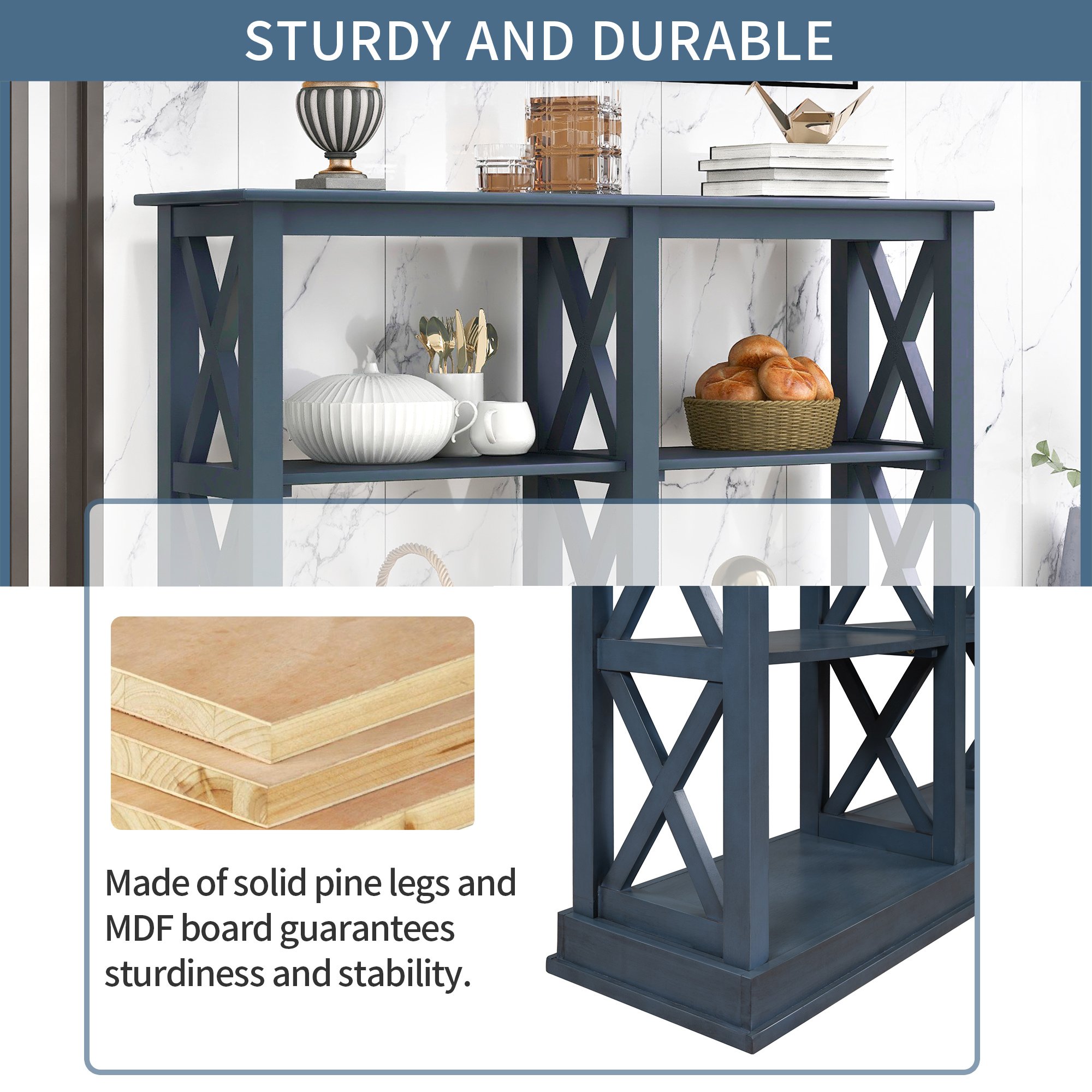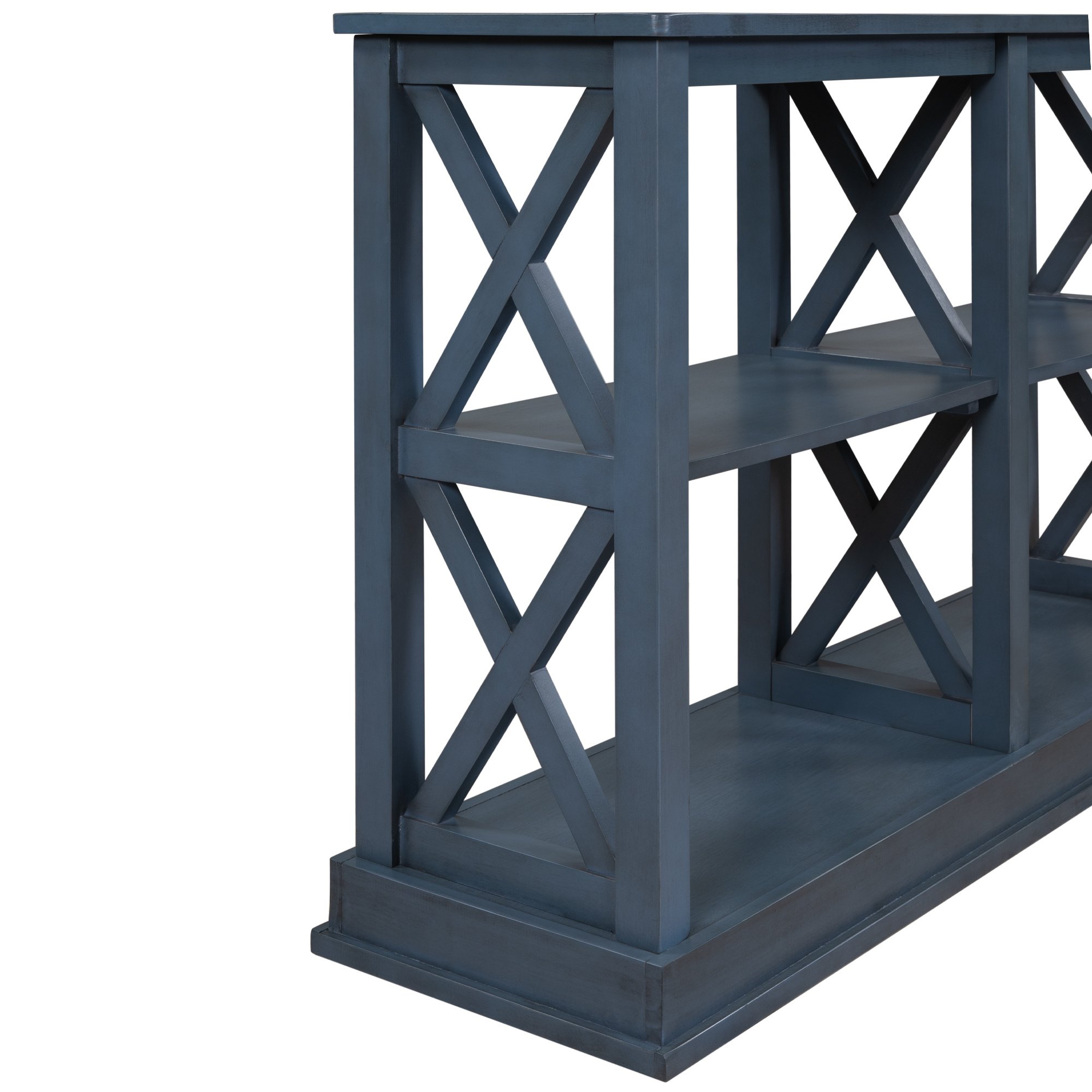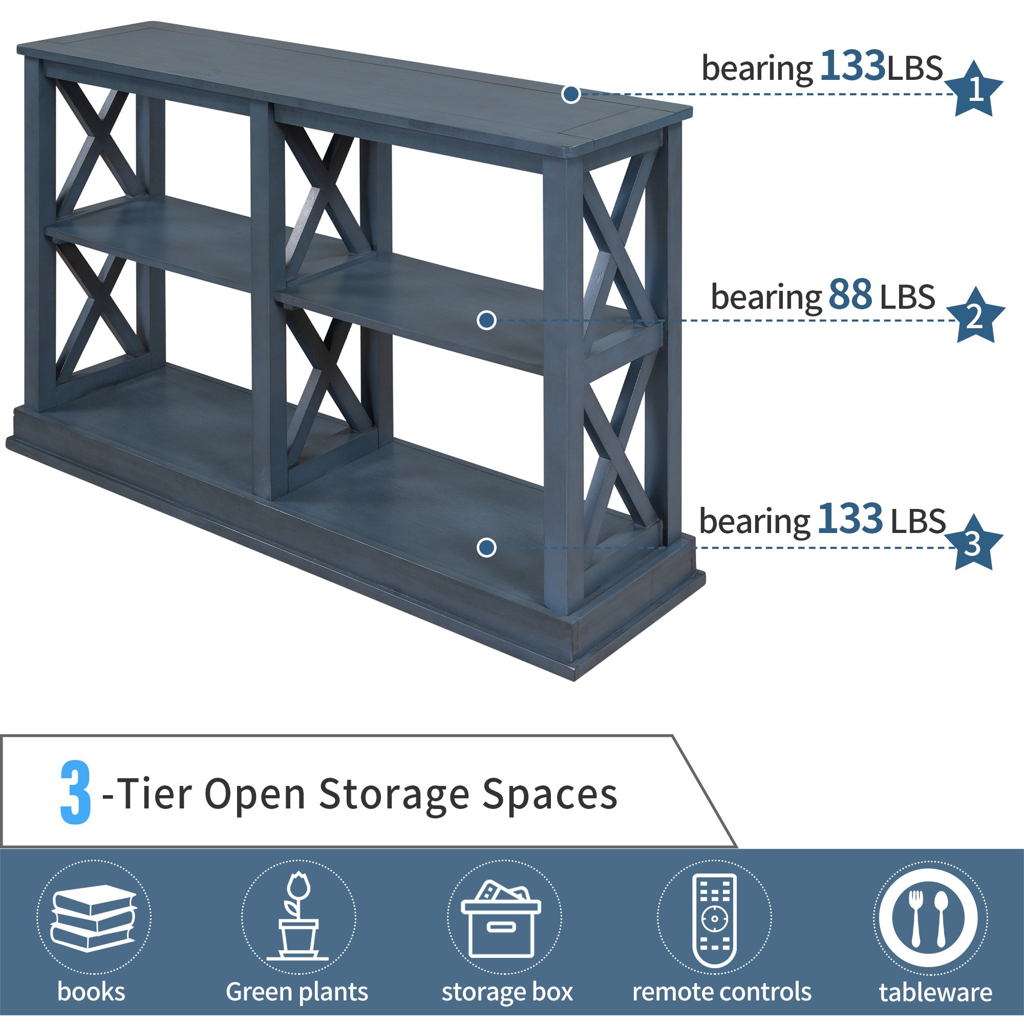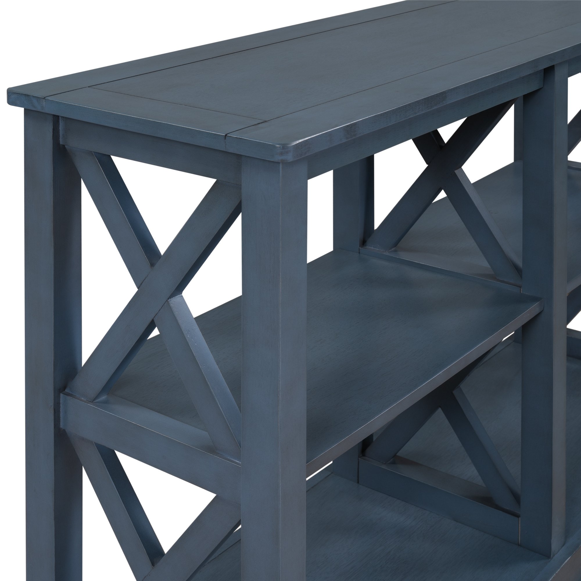 TREXM Console Table with 3-Tier Open Storage Spaces and "X" Legs, Narrow Sofa Entry Table for Living Room, Entryway and Hallway (Navy Blue)