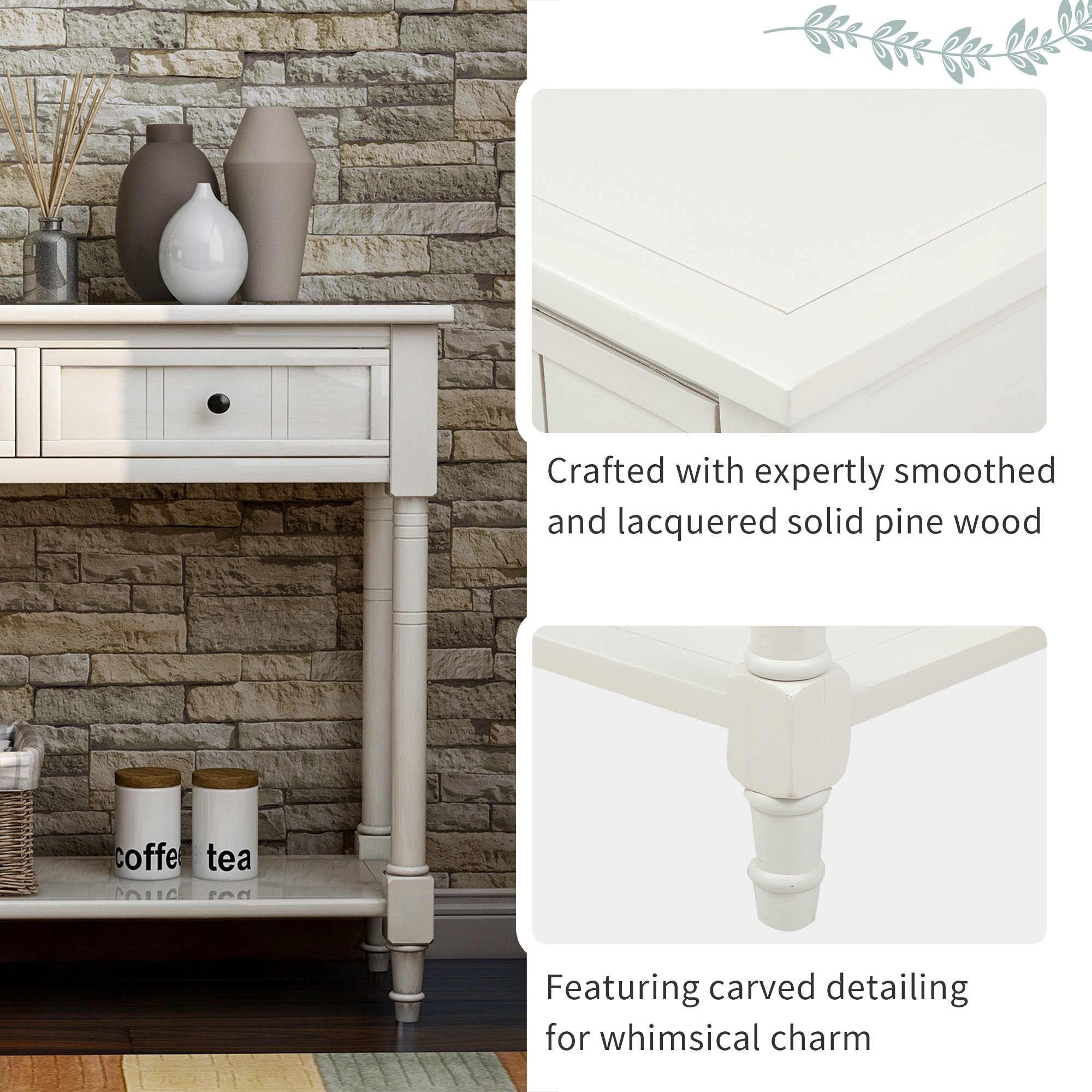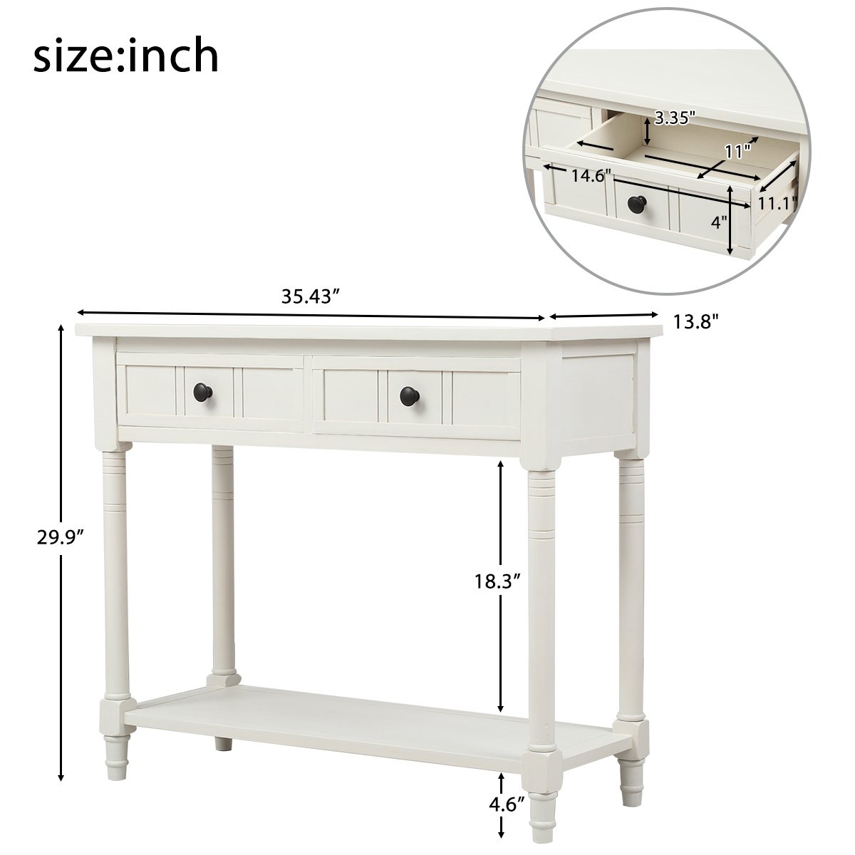 TREXM Daisy Series Console Table Traditional Design with Two Drawers and Bottom Shelf (Ivory White)