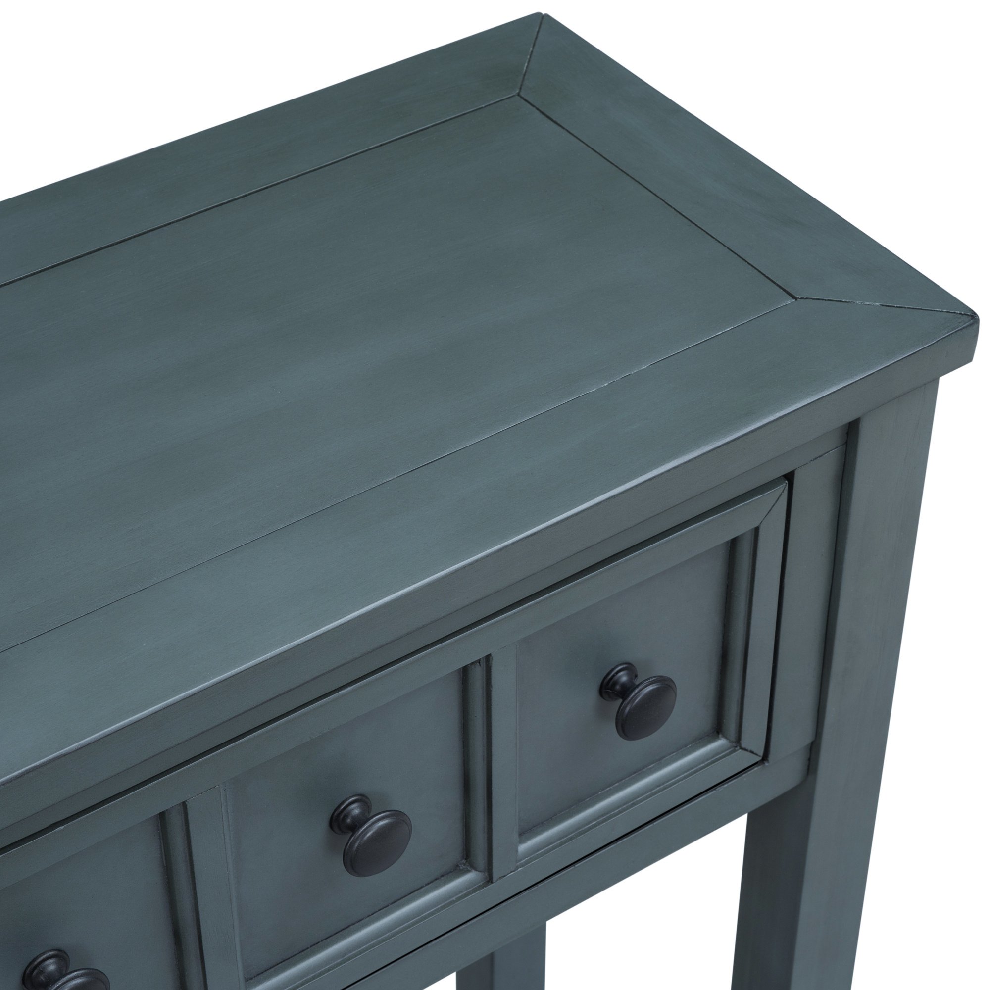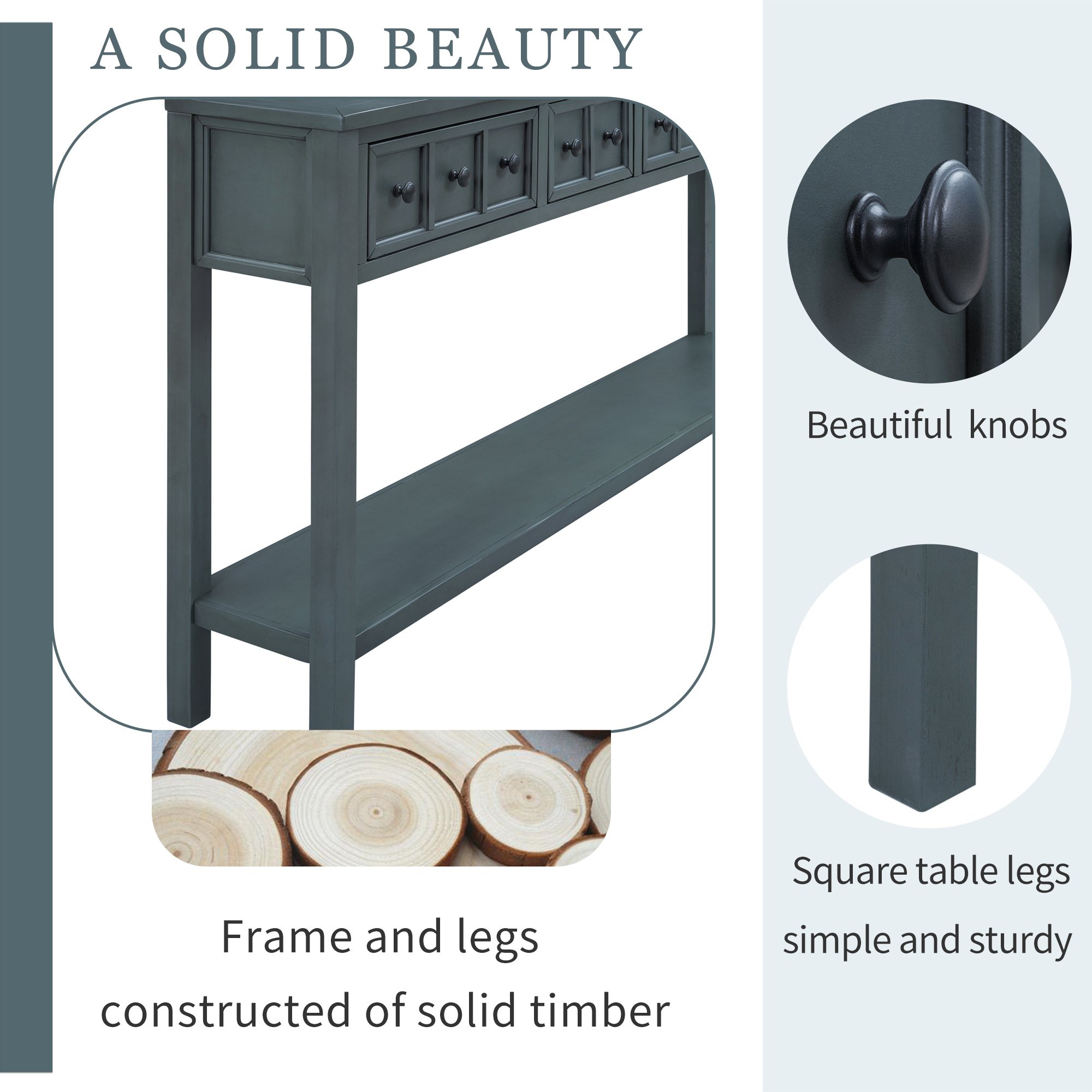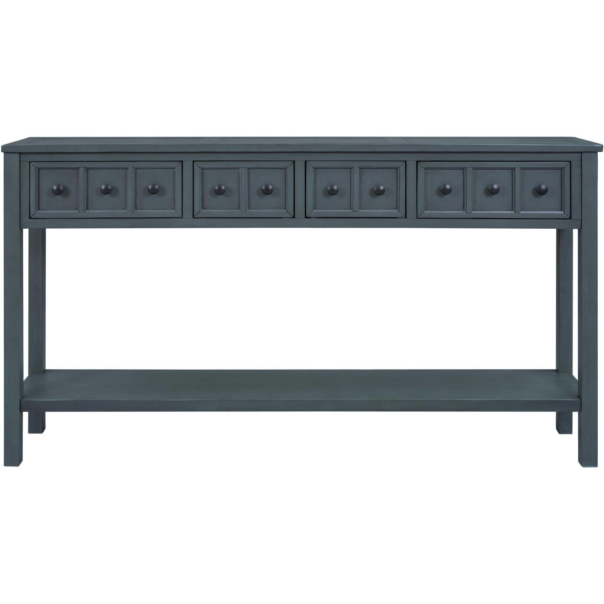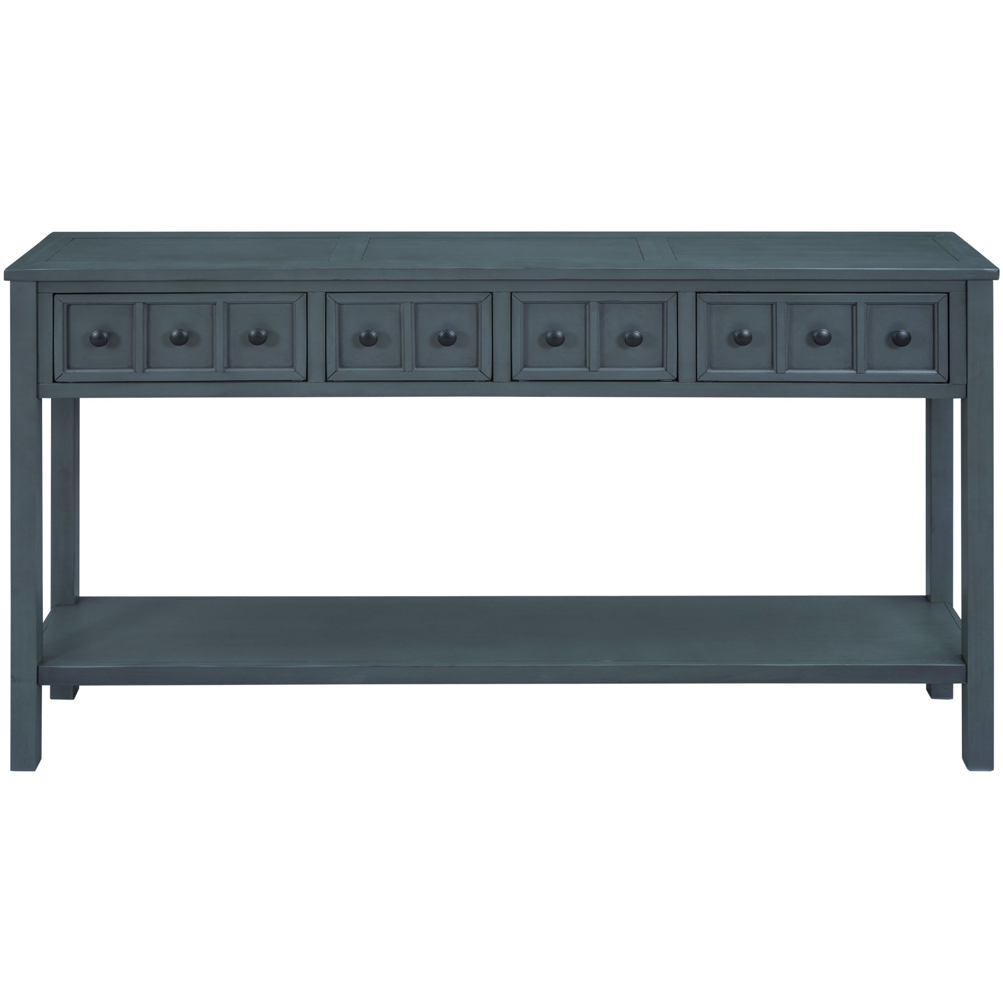 Home > TREXM Rustic Entryway Console Table, 60" Long Sofa Table with two Different Size Drawers and Bottom Shelf for Storage (Navy)