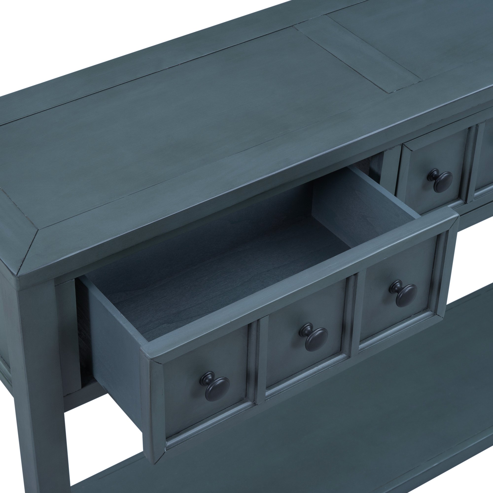 TREXM Rustic Entryway Console Table, 60" Long Sofa Table with two Different Size Drawers and Bottom Shelf for Storage (Navy)