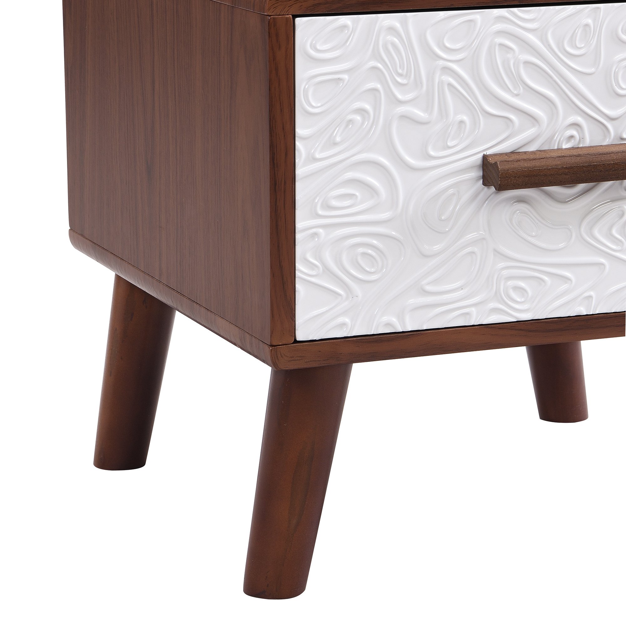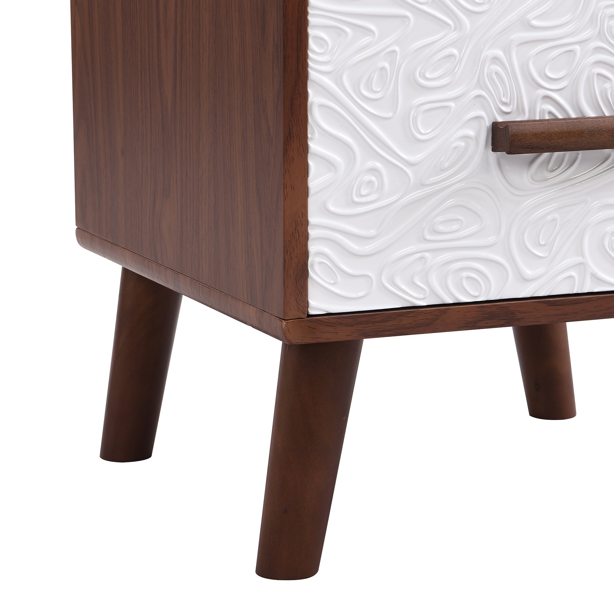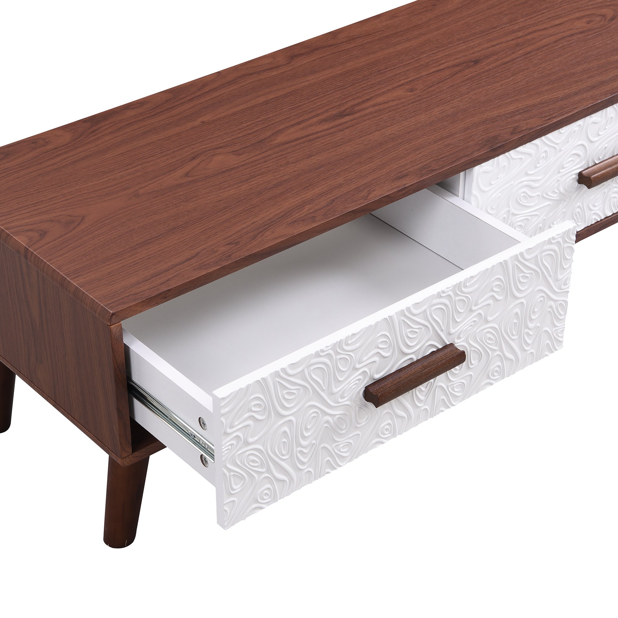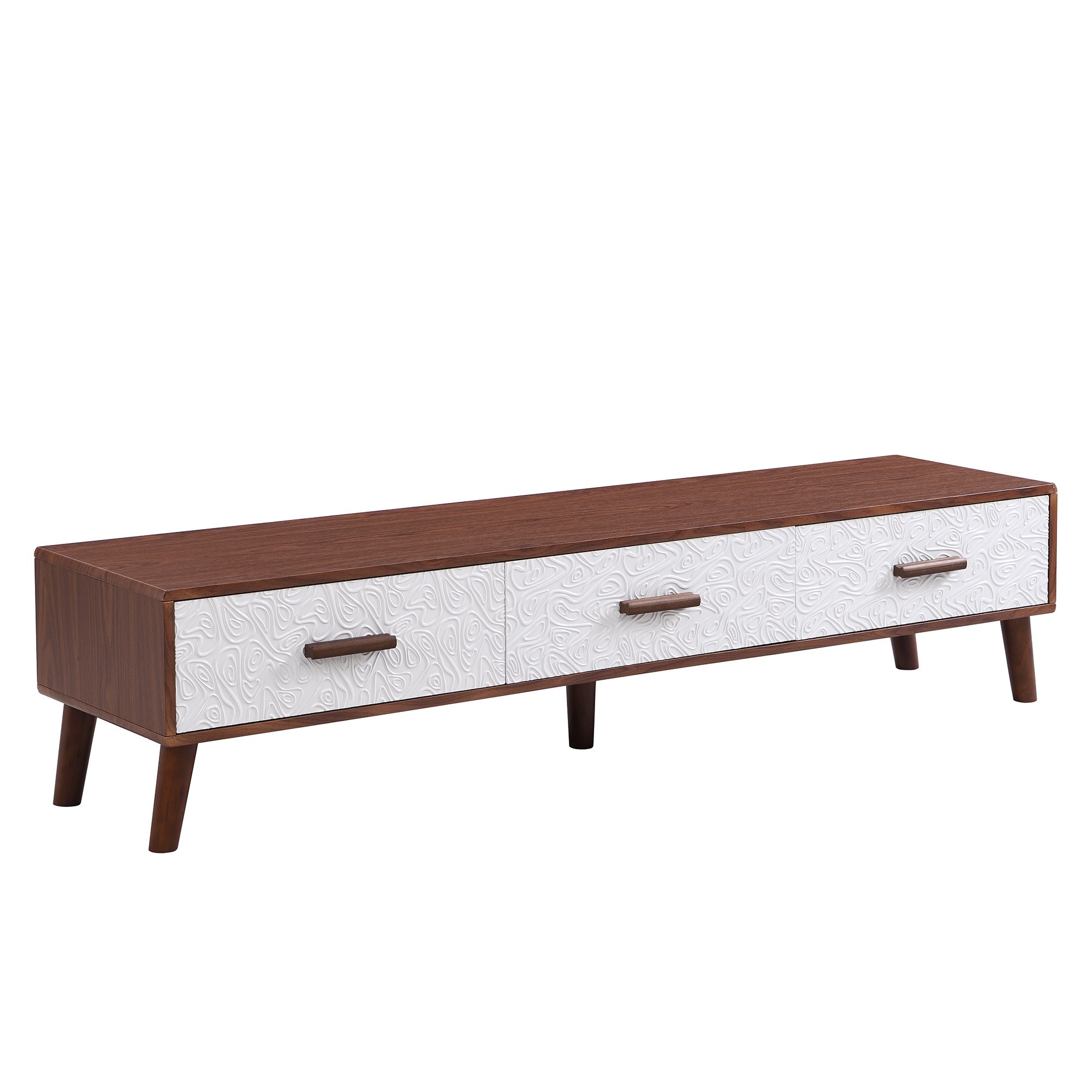 This TV stand set is crafted with a sleek and modern design that effortlessly blends with any interior decor. The clean lines and minimalist aesthetic create a contemporary look, while the embossed patterns on the drawer surfaces add a touch of elegance.