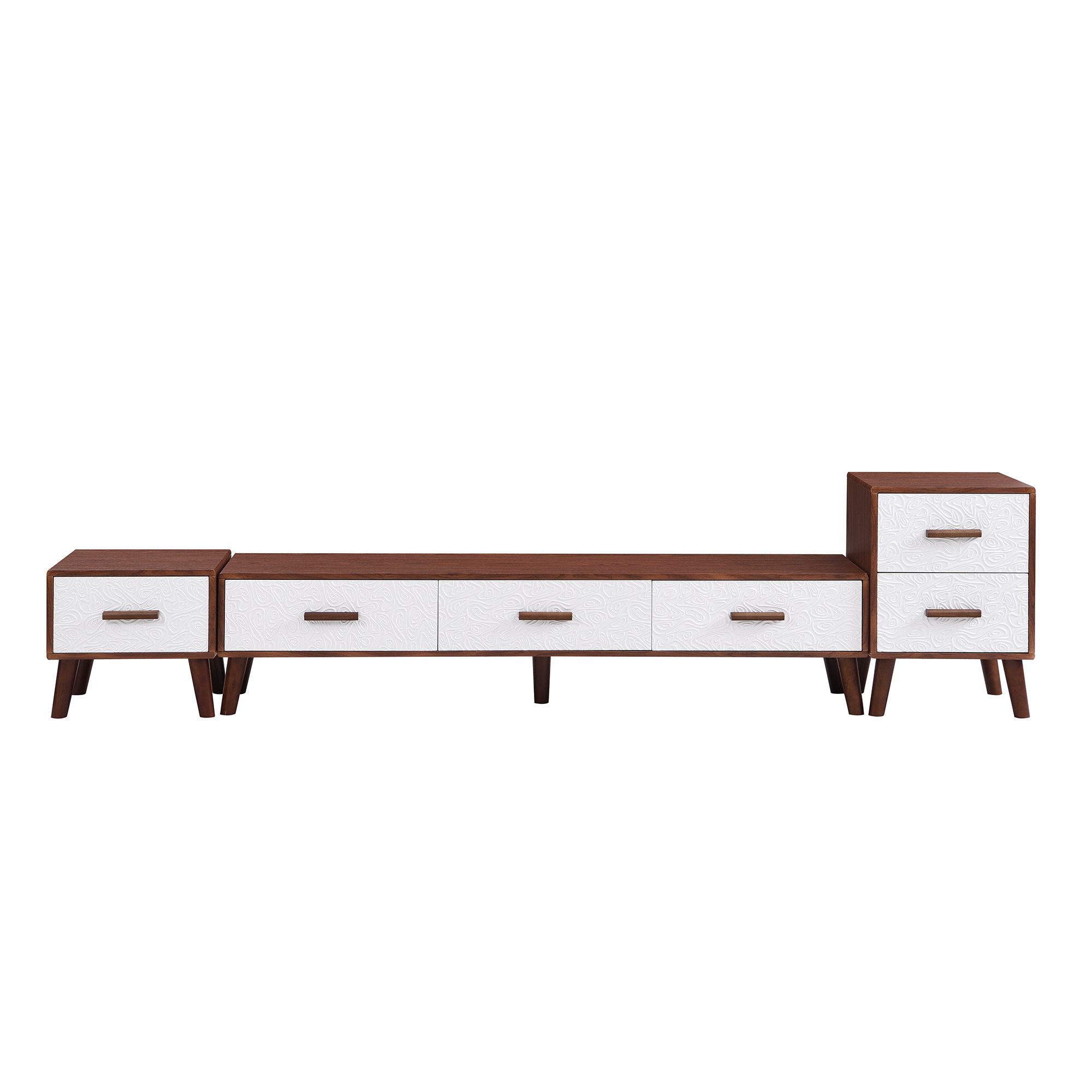 This TV stand set includes two end tables and a central TV stand, providing ample storage space for your entertainment essentials.