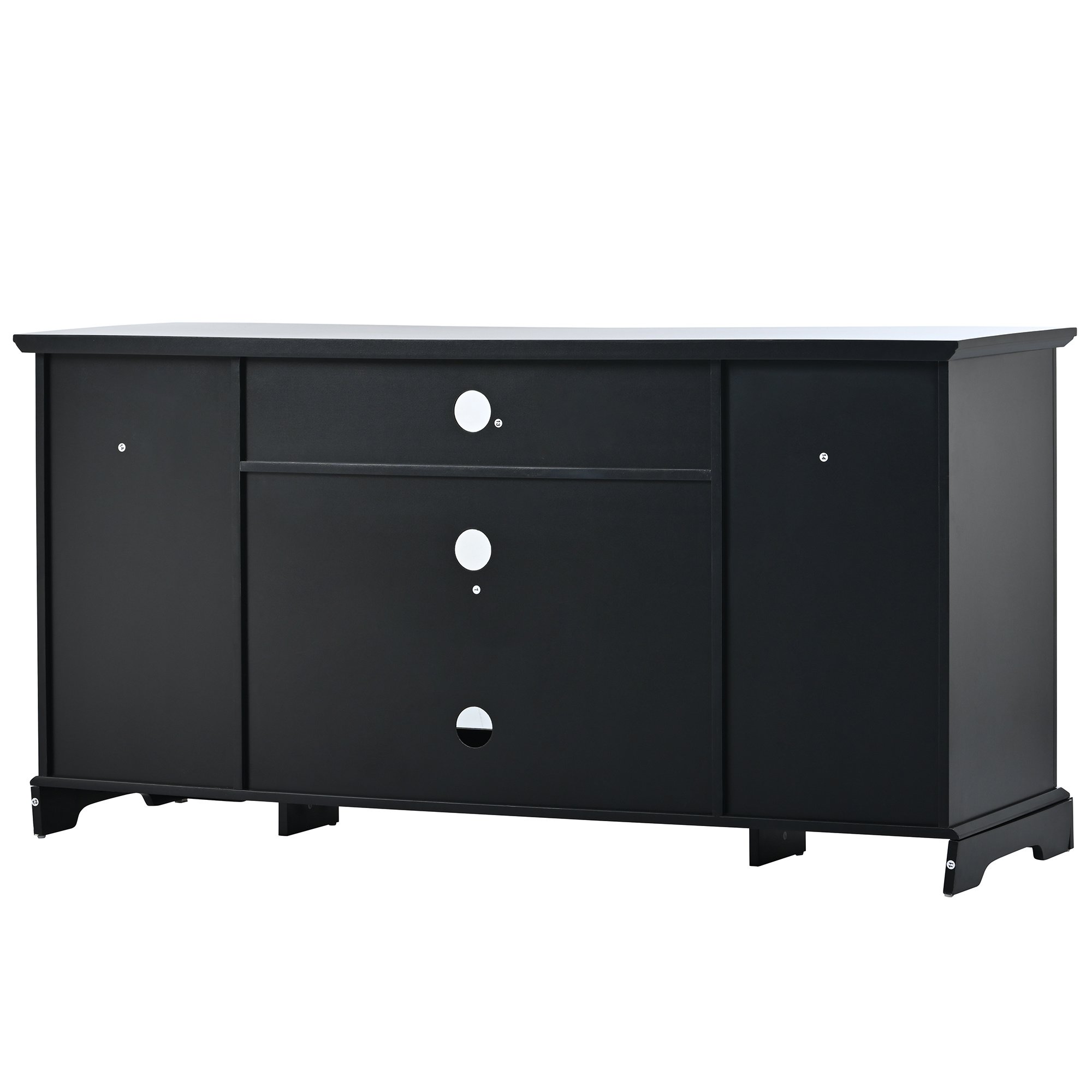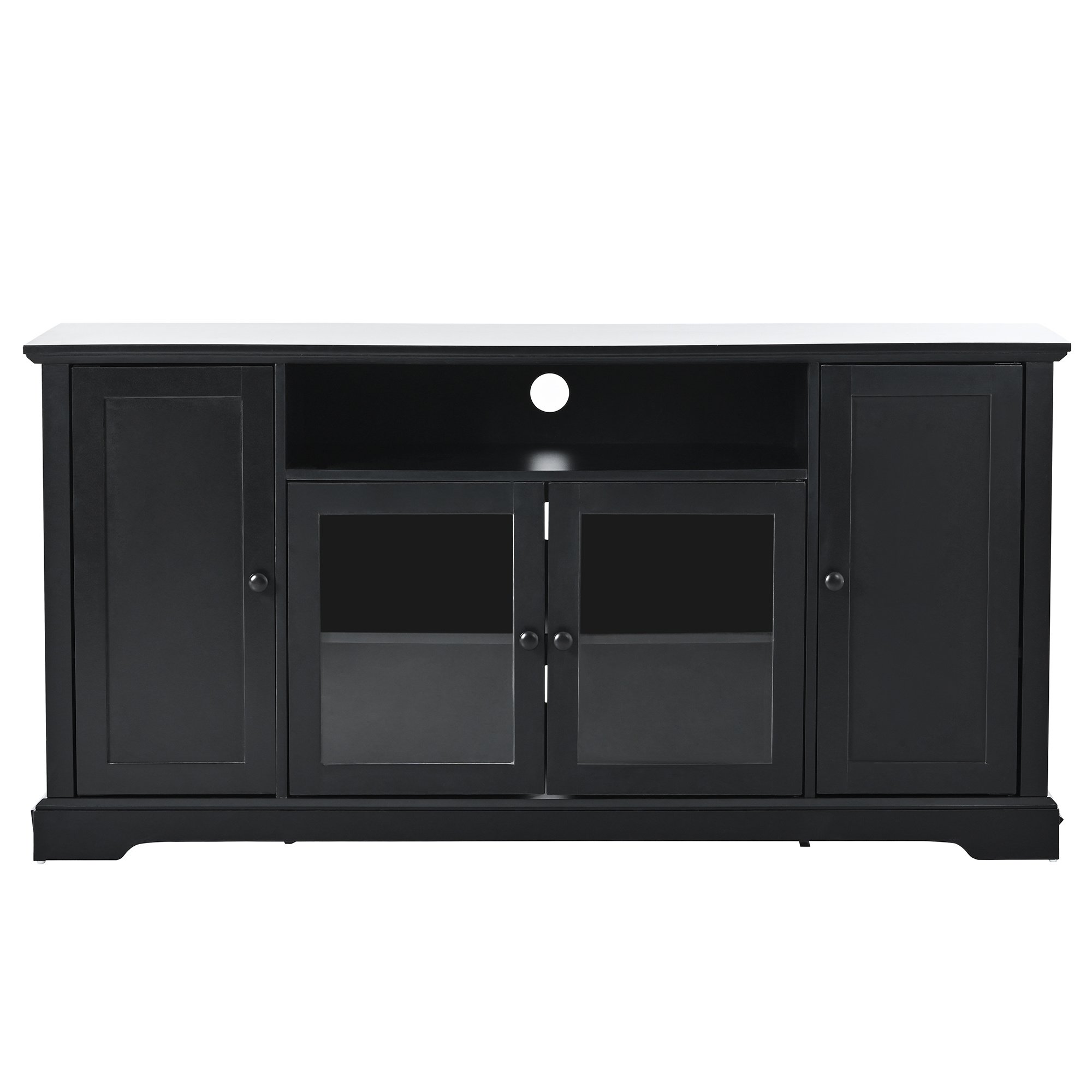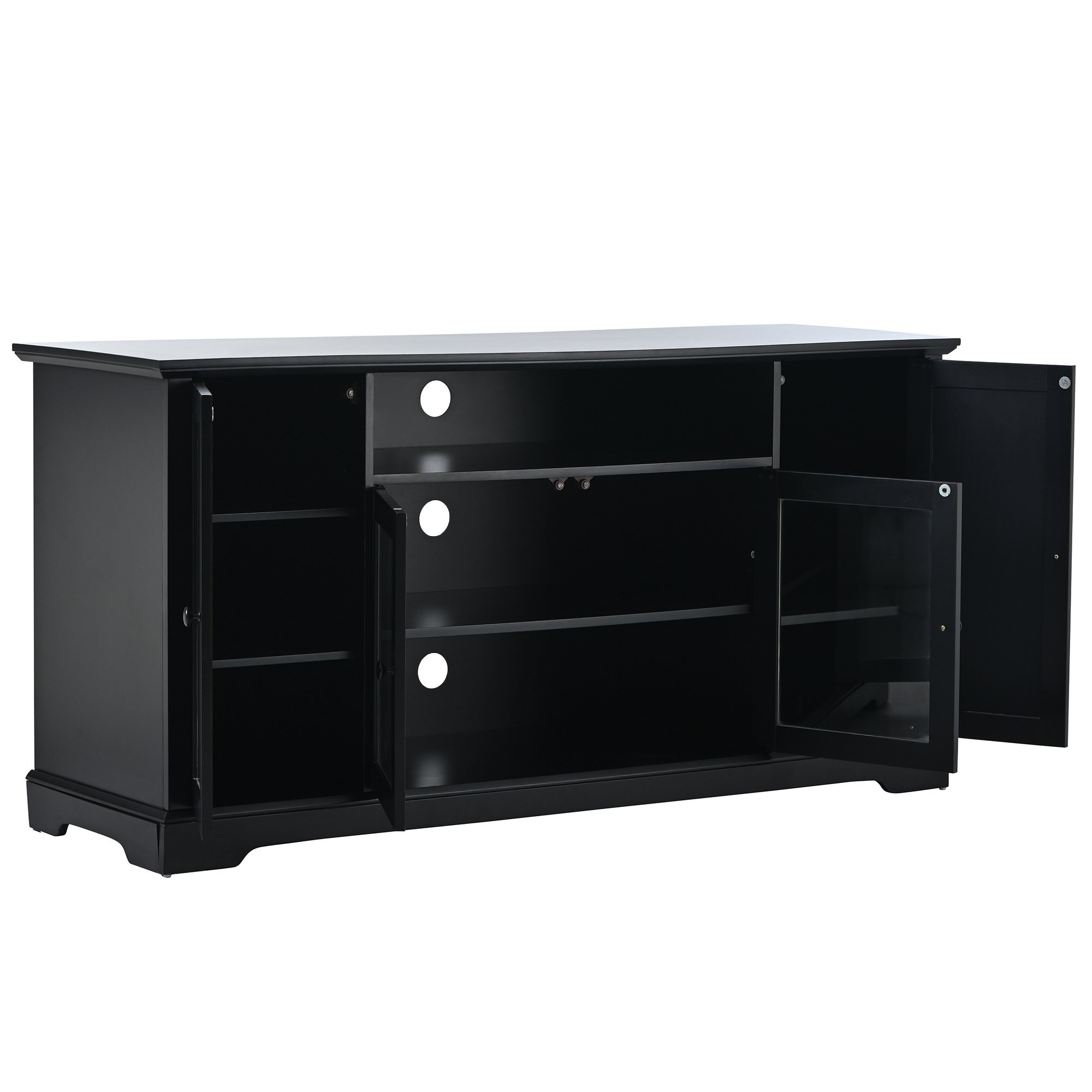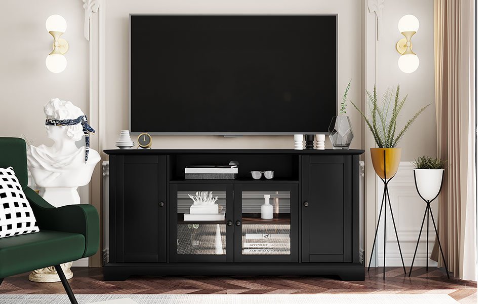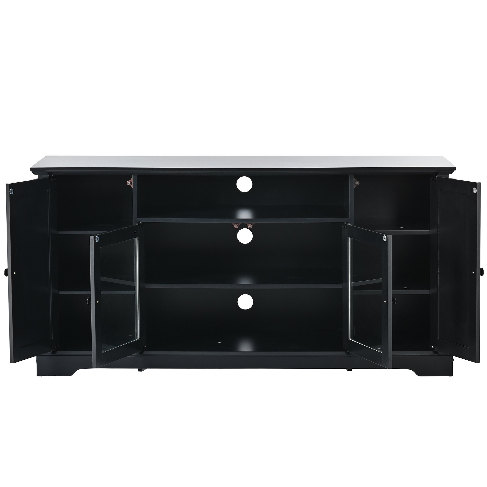 U-Can TV Stand for TV up to 65in with 2 Tempered Glass Doors Adjustable Panels Open Style Cabinet, Sideboard for Living room, Black