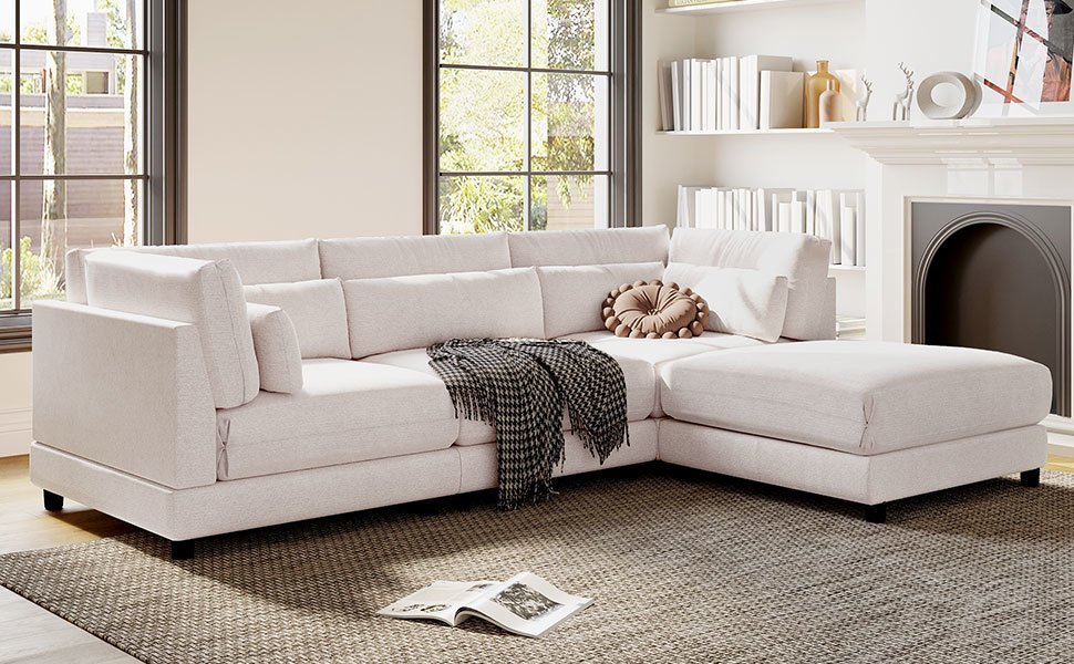 Upholstered in polyester blend fabric with cushions featuring thick foam cushion padding for prime relaxation. Lean back and stretch out your legs out long on the chaise lounge when you or guests need more space.
