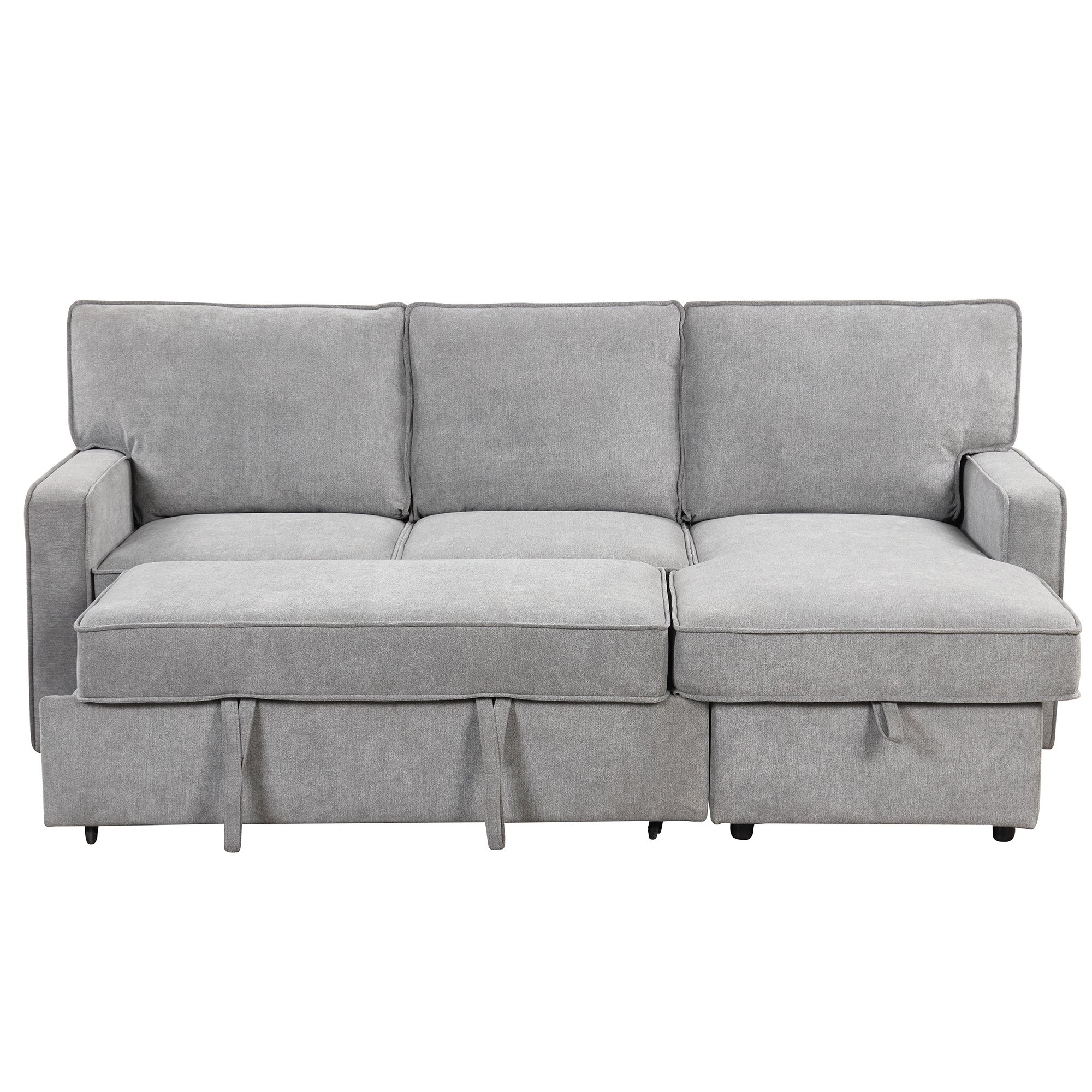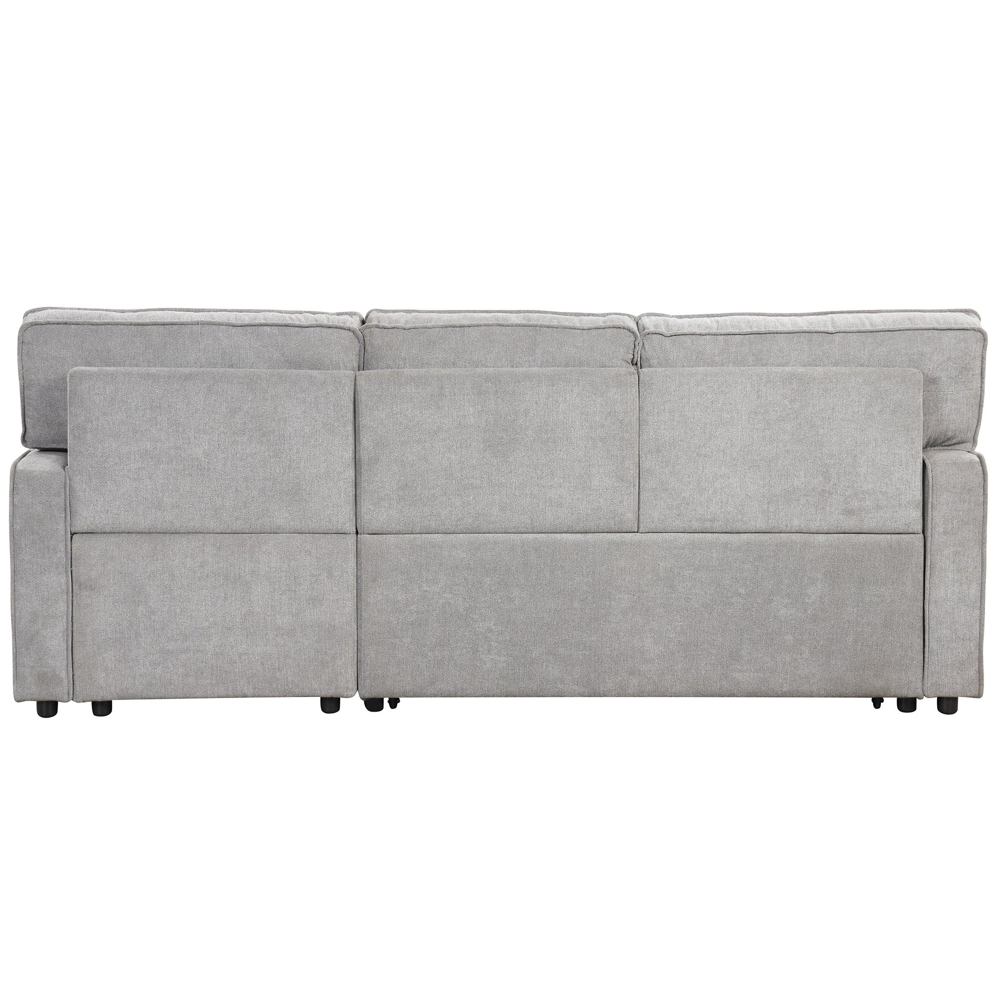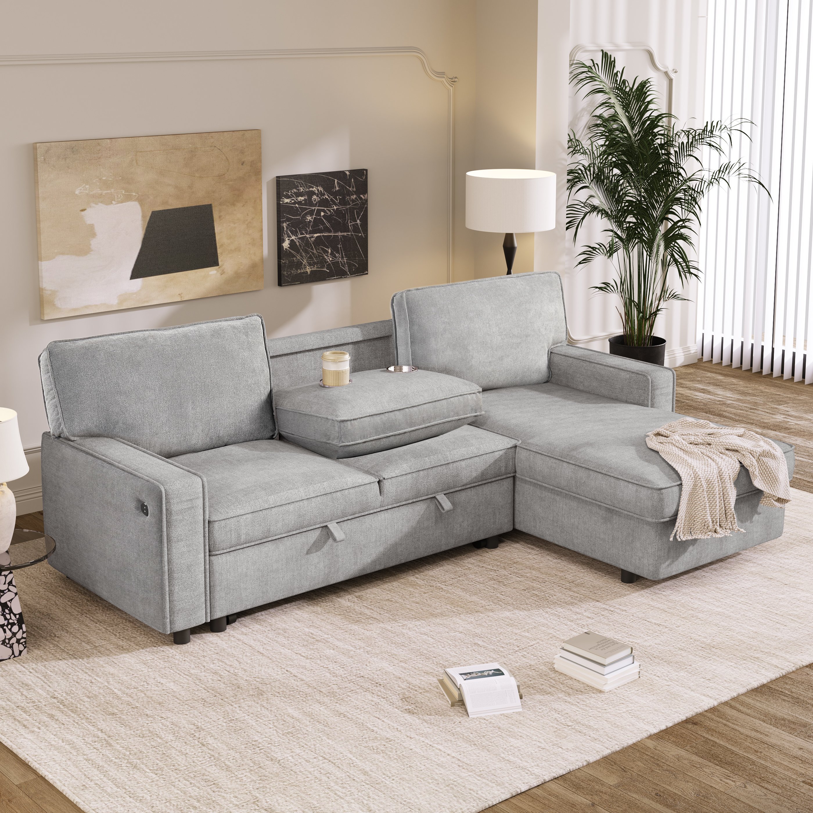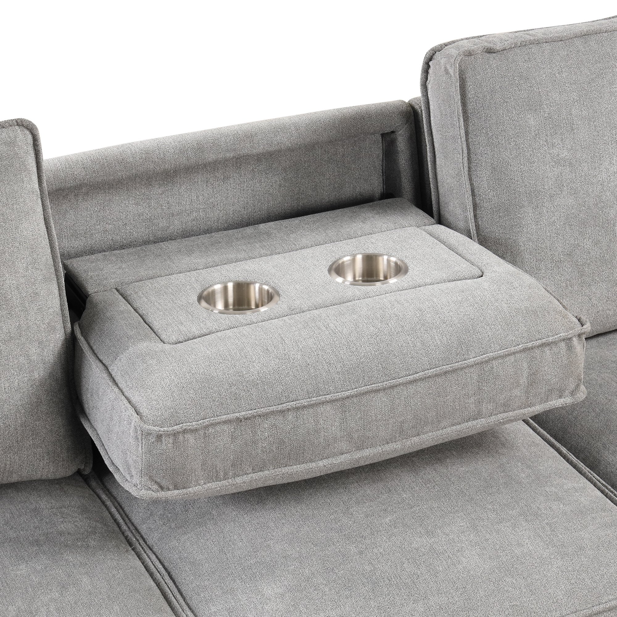 U_STYLE Upholstery Sleeper Sectional Sofa with Storage Space, USB port, 2 cup holders on Back Cushions