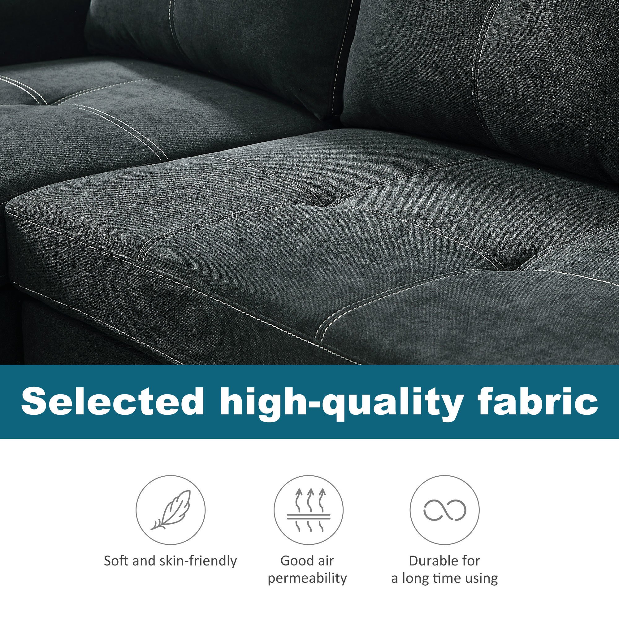 ✔ MODERN COMBO: Upholstered modern sofa designed by soft fabrics that can be arranged and reconfigured in various ways for small or large spacious living areas to fit different spaces.✔Convertible design. The sofa set includes a seat in the left corner and a seat in the right corner. The sofa's upholstered seat can be on the right or left side. You can build the position and shape you like.✔Quick conversion into a sleeping bed: The sofa bed pulls out a drawer type at the end, equipped with a portable handle with the assistance of the bottom pulley device to quickly complete the bed transformation. It can meet your various needs and no longer worry about unexpected guests.✔ Comfortable cushions: Our sofa is soft with comfortable high-density foam cushions for ultimate comfort and support. Optimal softness with extra soft cushions give the sofa a relaxing feeling. All back cushion covers are removable and easy to clean.✔Perfect storage space (52*21*7 inch): This combination sofa with storage chaise will make the perfect addition to your den or living room. The convenient space in the storage chaise provides the perfect place to put blankets and magazines.✔SIDE STORAGE POCKET: Holds a remote control board or books