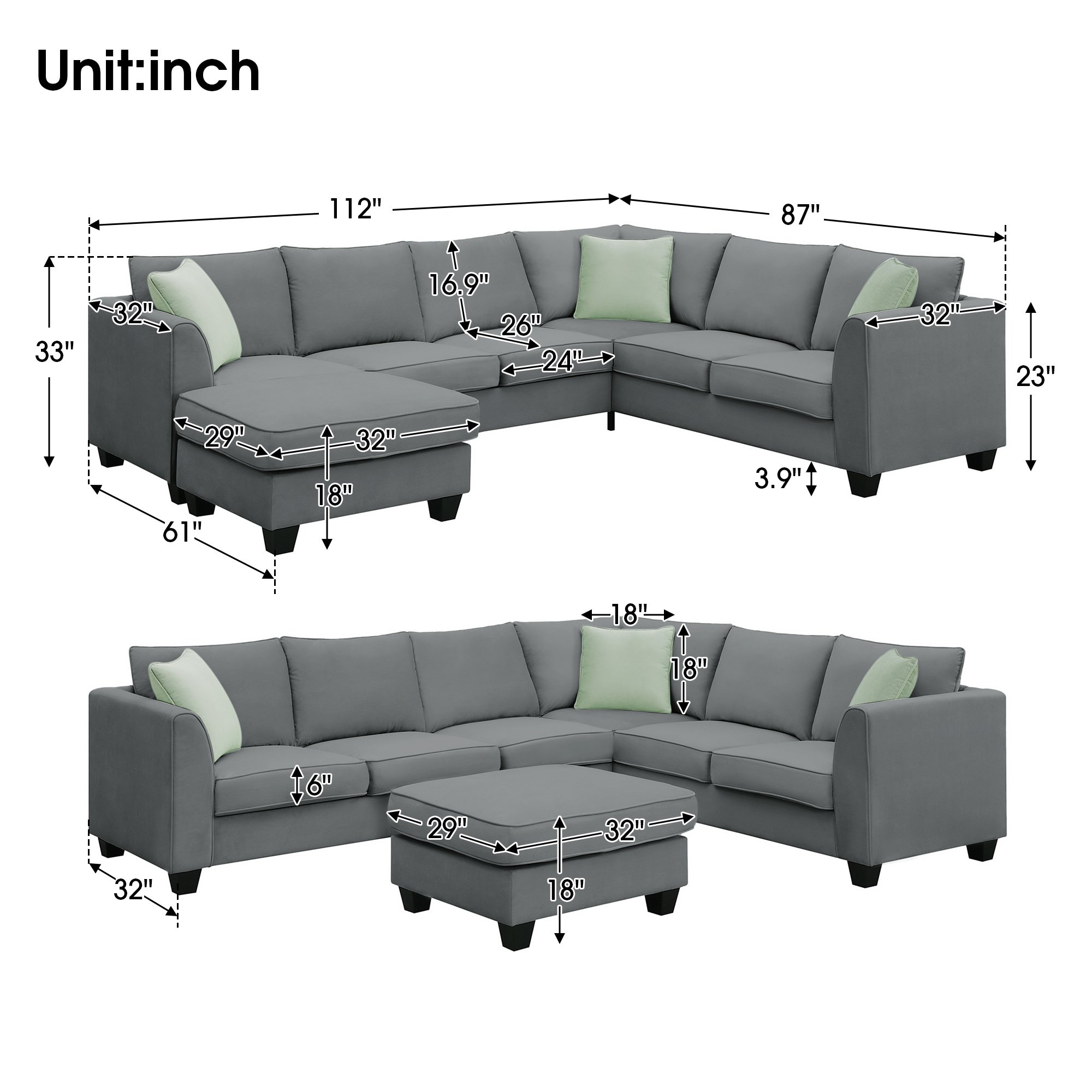 [VIDEO provided] 112*87" Sectional Sofa Couches Living Room Sets, 7 Seats Modular Sectional Sofa with Ottoman, L Shape Fabric Sofa Corner Couch Set wi