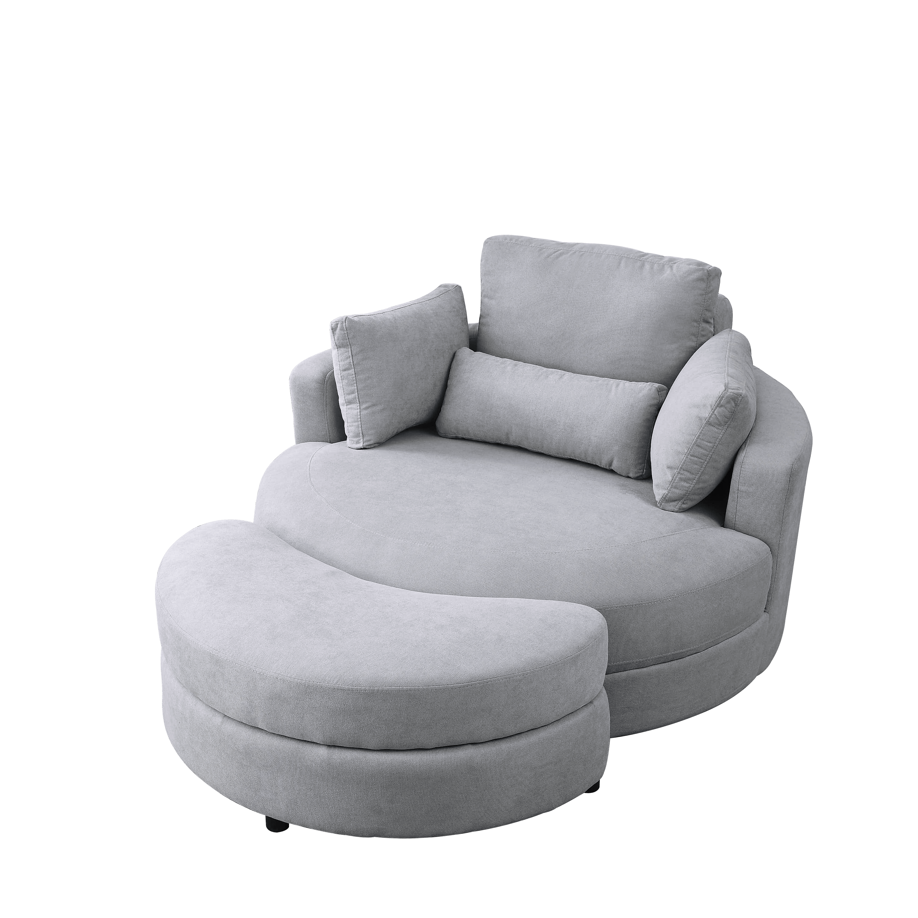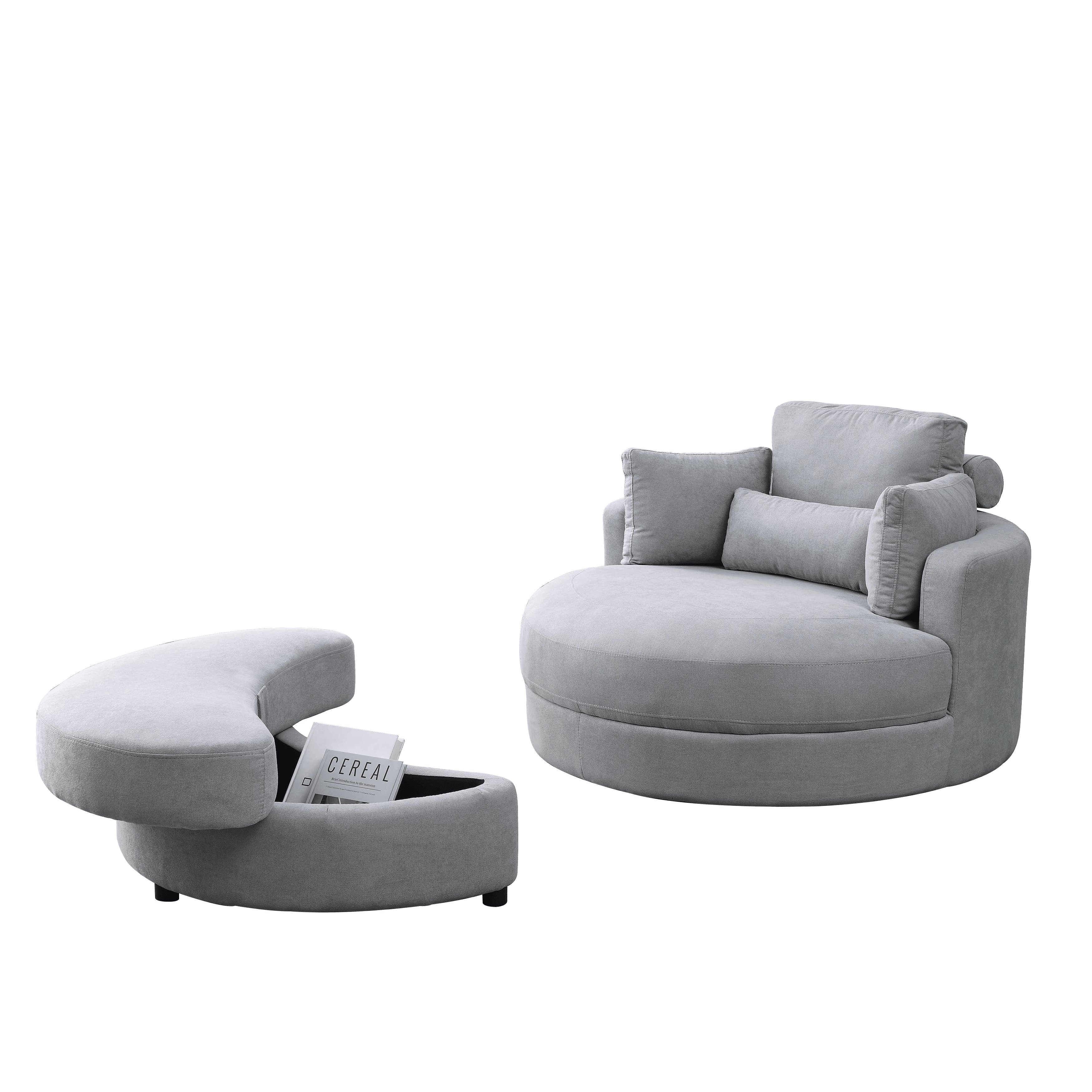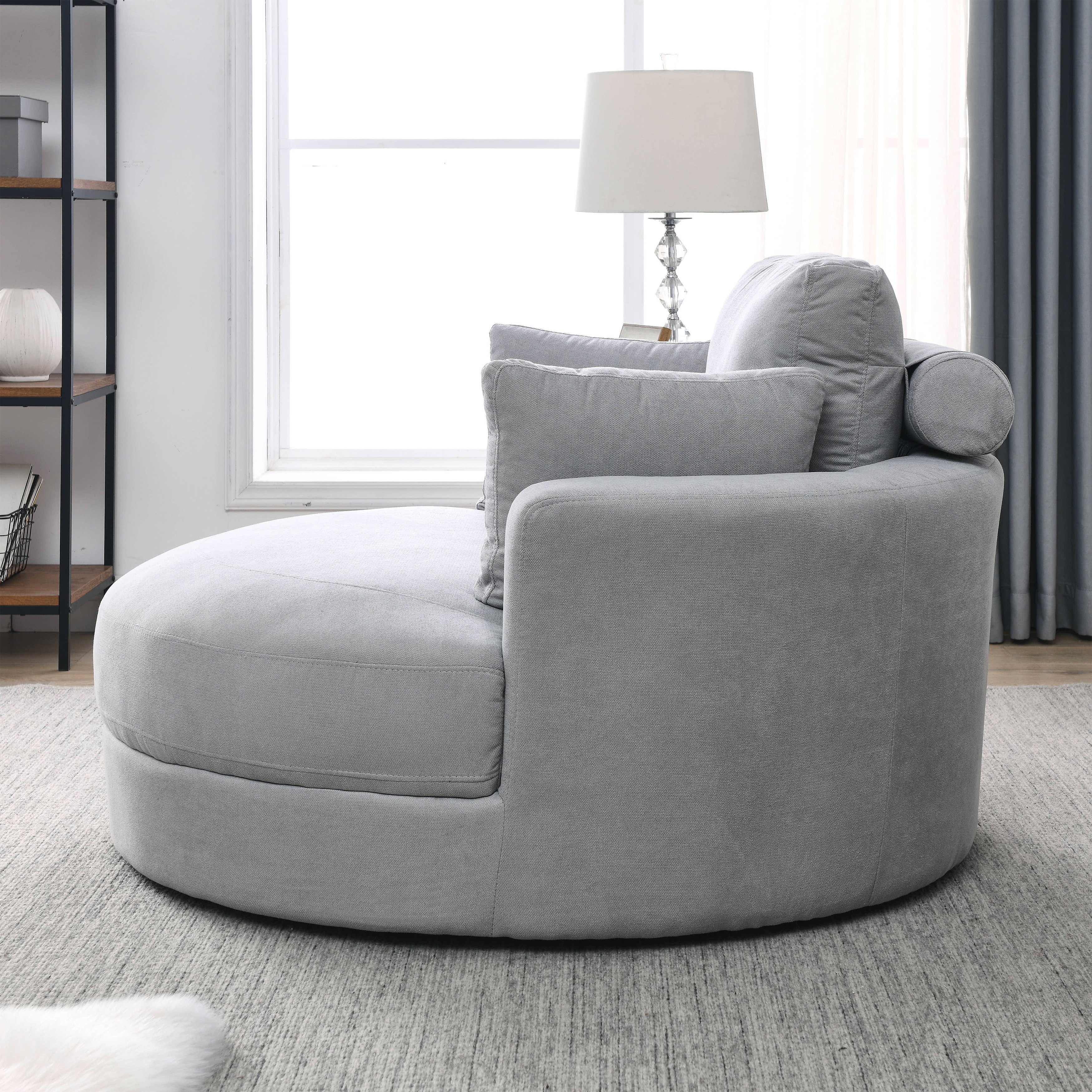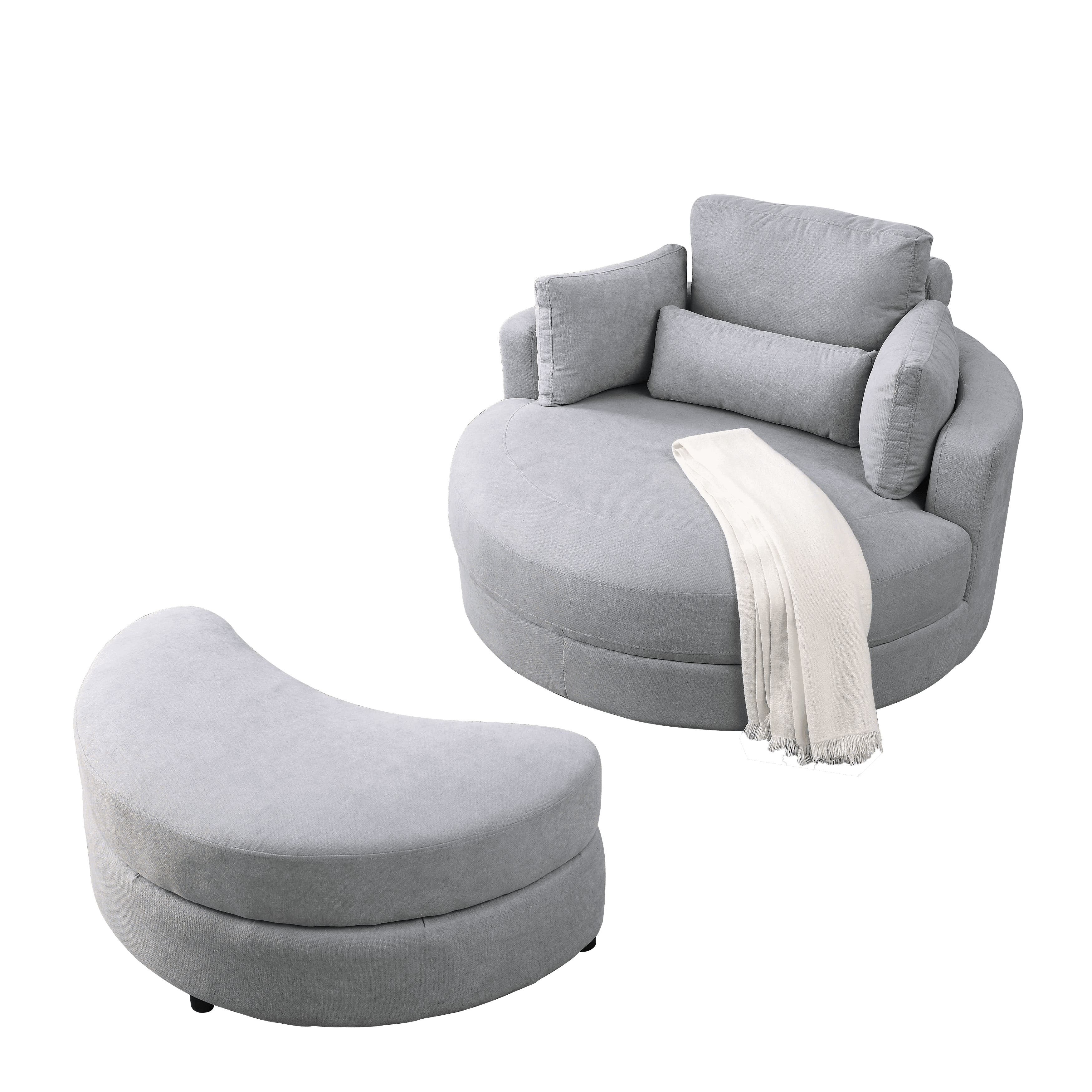 [Video] Welike Swivel Accent Barrel Modern Grey Sofa Lounge Club Big Round Chair with Storage Ottoman Linen Fabric for Living Room Hotel with Pillows