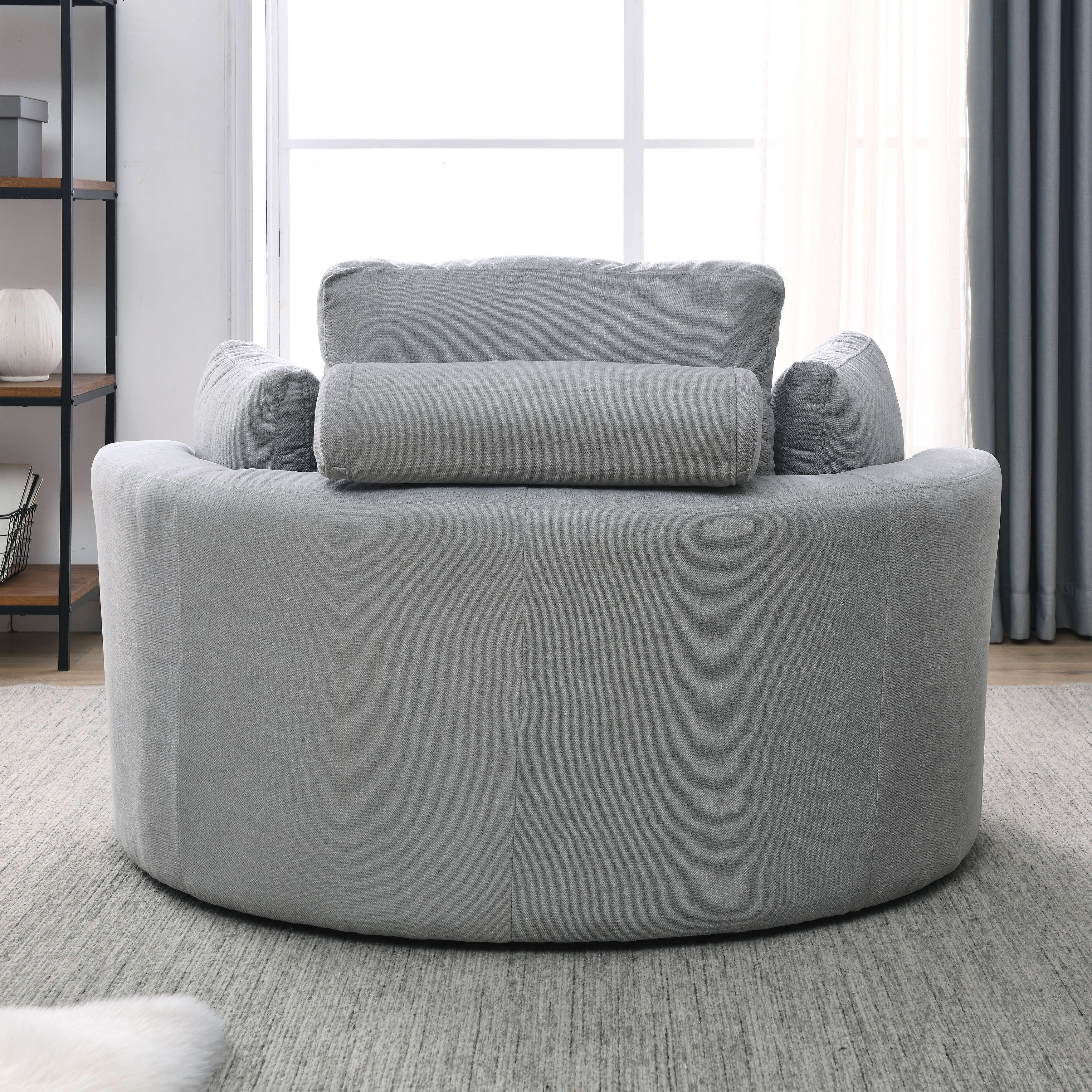 Home > [Video] Welike Swivel Accent Barrel Modern Grey Sofa Lounge Club Big Round Chair with Storage Ottoman Linen Fabric for Living Room Hotel with Pillows